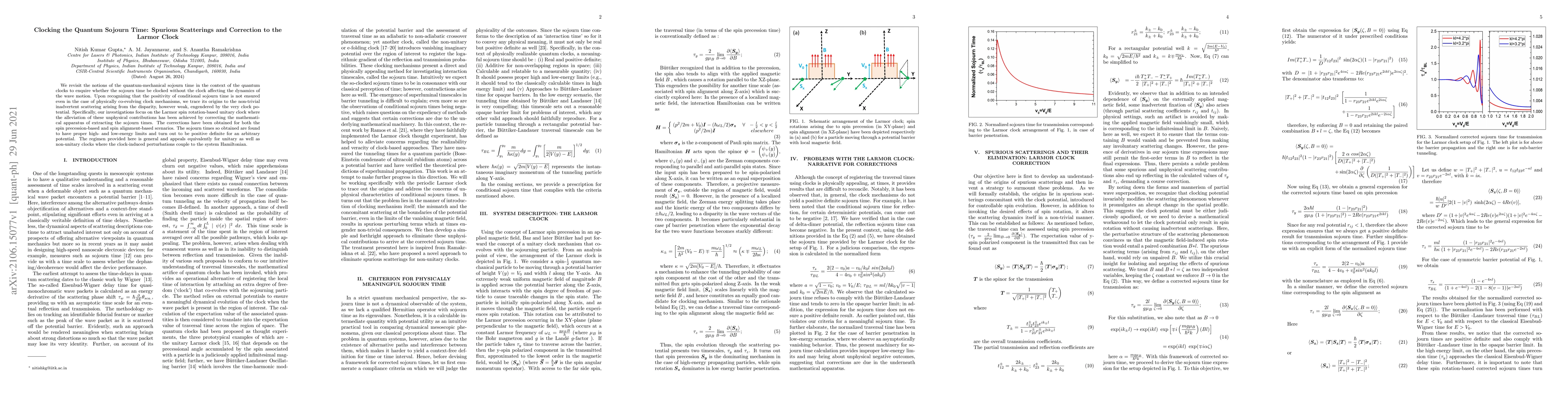 This paper explores the quantum-mechanical sojourn time in quantum clocks, addressing the issue of spurious scatterings that arise from the clock's potential. It proposes corrections to the Larmor clock model to ensure positivity of sojourn times, achieving this through refined mathematical techniques for both spin precession and alignment scenarios.