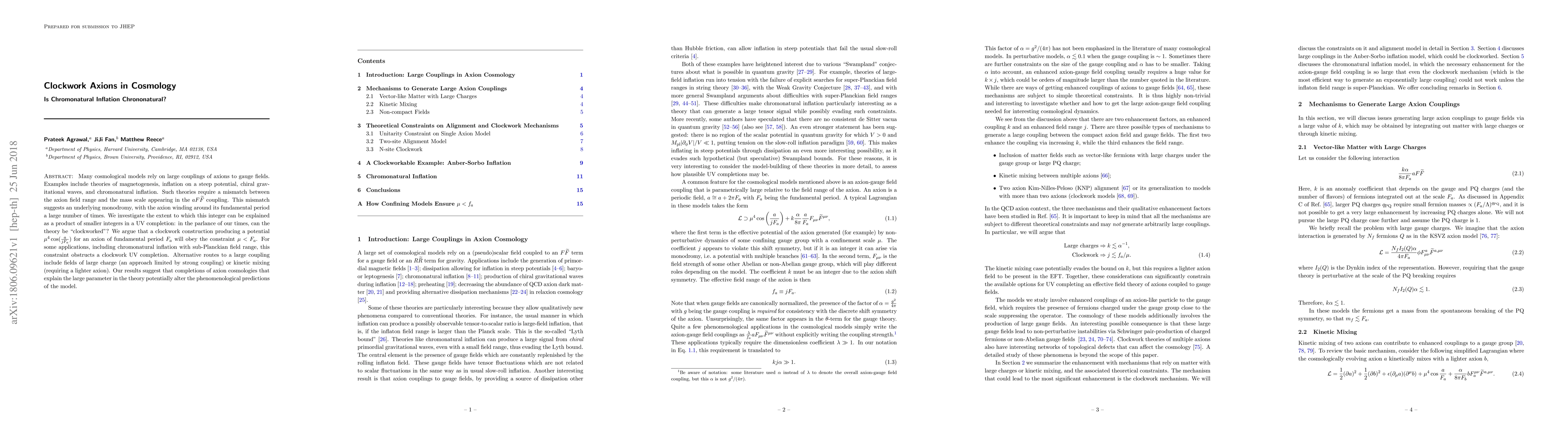 Many cosmological models rely on large couplings of axions to gauge fields. Examples include theories of magnetogenesis, inflation on a steep potential, chiral gravitational waves, and chromonatural inflation. Such theories require a mismatch between the axion field range and the mass scale appearing in the $a F \widetilde{F}$ coupling. This mismatch suggests an underlying monodromy, with the axion winding around its fundamental period a large number of times. We investigate the extent to which this integer can be explained as a product of smaller integers in a UV completion: in the parlance of our times, can the theory be "clockworked"? We argue that a clockwork construction producing a potential $\mu^4 \cos(\frac{a}{j F_a})$ for an axion of fundamental period $F_a$ will obey the constraint $\mu < F_a$. For some applications, including chromonatural inflation with sub-Planckian field range, this constraint obstructs a clockwork UV completion. Alternative routes to a large coupling include fields of large charge (an approach limited by strong coupling) or kinetic mixing (requiring a lighter axion). Our results suggest that completions of axion cosmologies that explain the large parameter in the theory potentially alter the phenomenological predictions of the model.