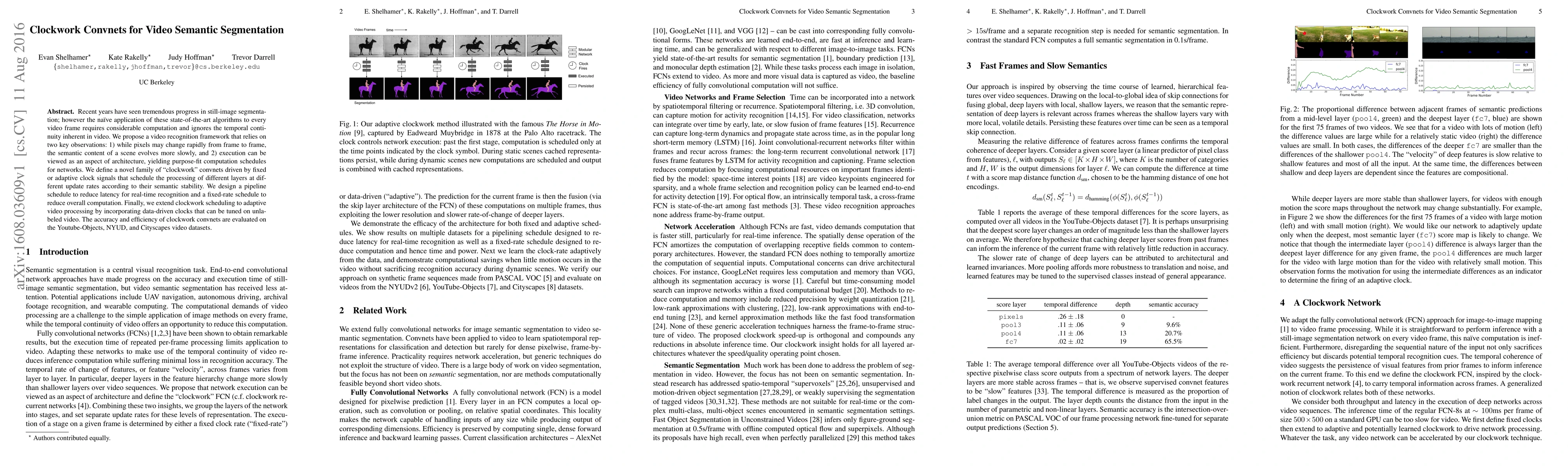 Researchers propose a new approach to video semantic segmentation using "clockwork" convolutional networks that adapt processing schedules based on scene stability, improving efficiency and accuracy.