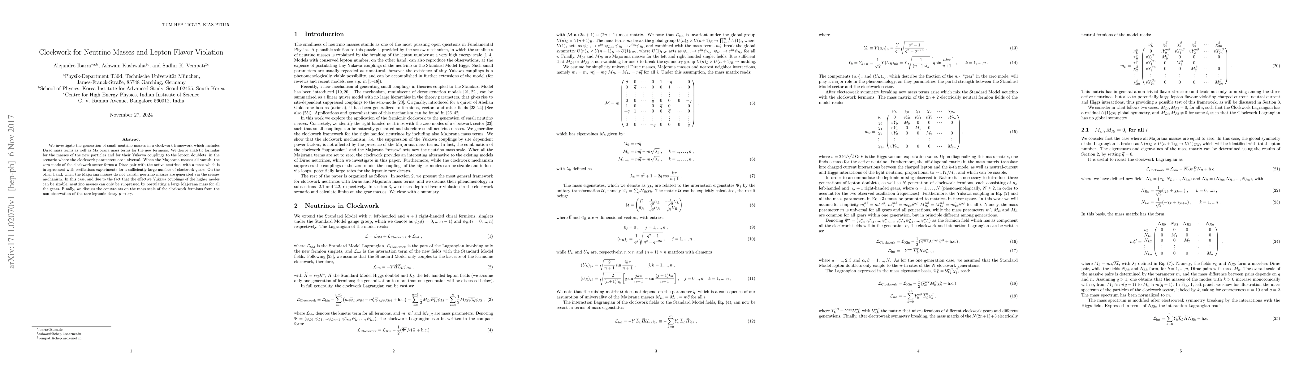 This paper explores the clockwork framework for generating small neutrino masses, deriving formulas for new particle masses and their Yukawa couplings. It shows that small neutrino masses can be achieved via the seesaw mechanism, with constraints from lepton flavor violation processes like $\mu\rightarrow e\gamma$.