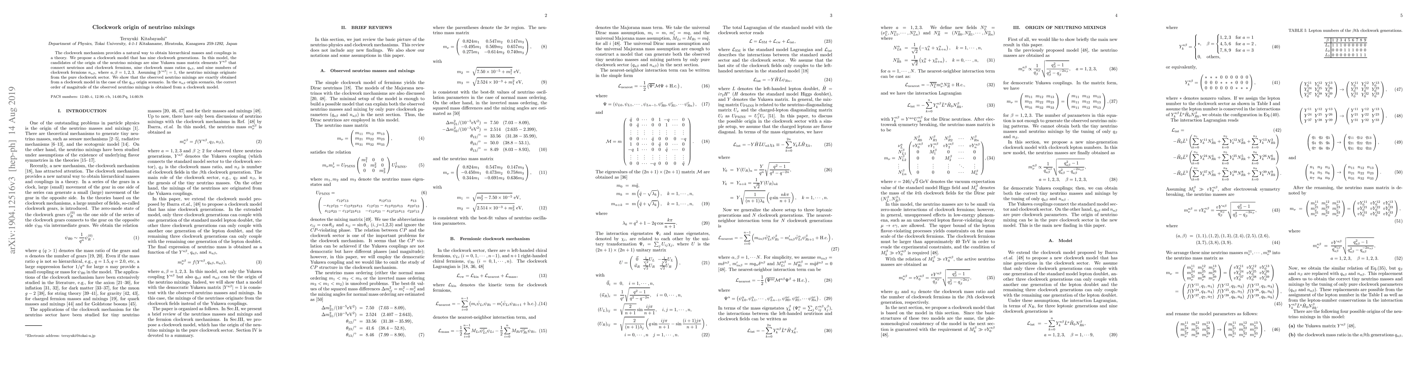 The paper introduces a nine-generation clockwork model that offers a new perspective on the origin of neutrino mixings, focusing on clockwork mass ratios (q_aβ) and numbers of clockwork fermions (n_aβ) as primary sources.