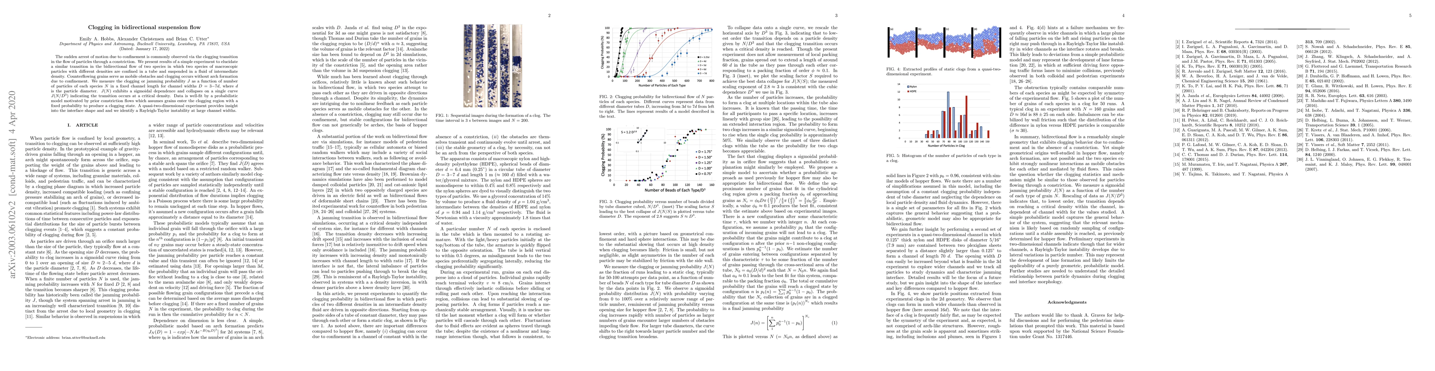 The paper presents a simple experimental design and a probabilistic model to describe clogging transitions in bidirectional granular flows, providing insights into the critical density and scaling behavior.