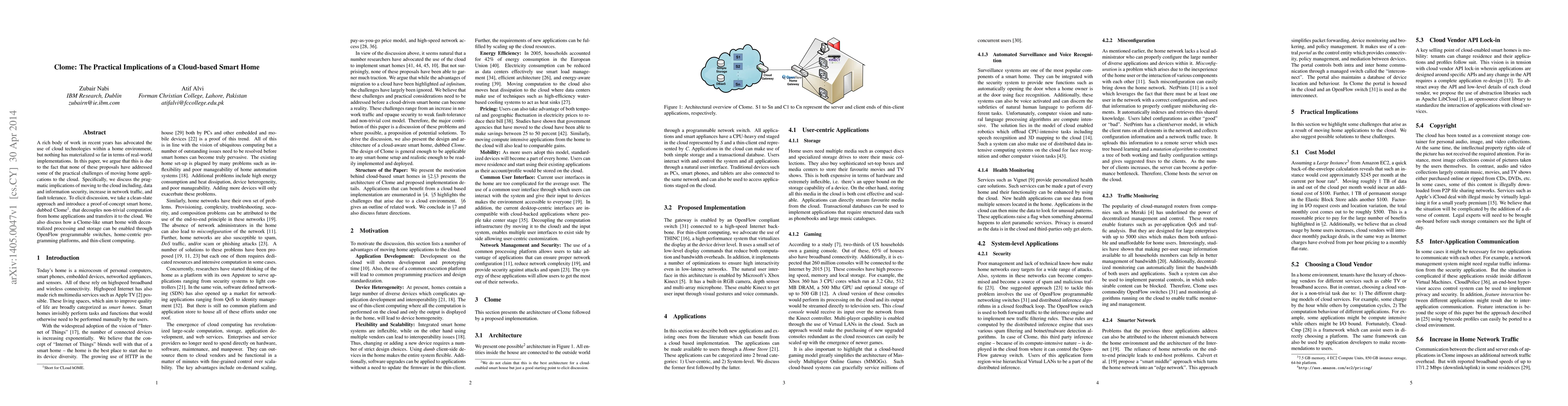 A rich body of work in recent years has advocated the use of cloud technologies within a home environment, but nothing has materialized so far in terms of real-world implementations. In this paper, we argue that this is due to the fact that none of these proposals have addressed some of the practical challenges of moving home applications to the cloud. Specifically, we discuss the pragmatic implications of moving to the cloud including, data and information security, increase in network traffic, and fault tolerance. To elicit discussion, we take a clean-slate approach and introduce a proof-of-concept smart home, dubbed Clome, that decouples non-trivial computation from home applications and transfers it to the cloud. We also discuss how a Clome-like smart home with decentralized processing and storage can be enabled through OpenFlow programmable switches, home-centric programming platforms, and thin-client computing.