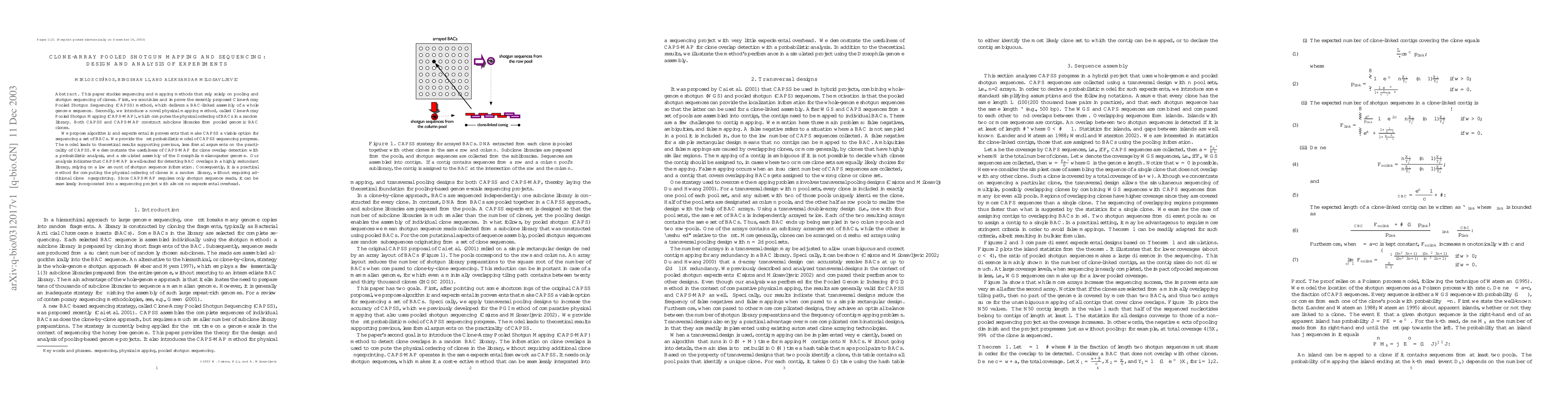 This paper improves the Clone-Array Pooled Shotgun Sequencing (CAPSS) method for BAC-linked genome sequencing and introduces CAPS-MAP for physical ordering of BACs, demonstrating both methods' practicality through probabilistic models and simulated genome assembly of Drosophila melanogaster.