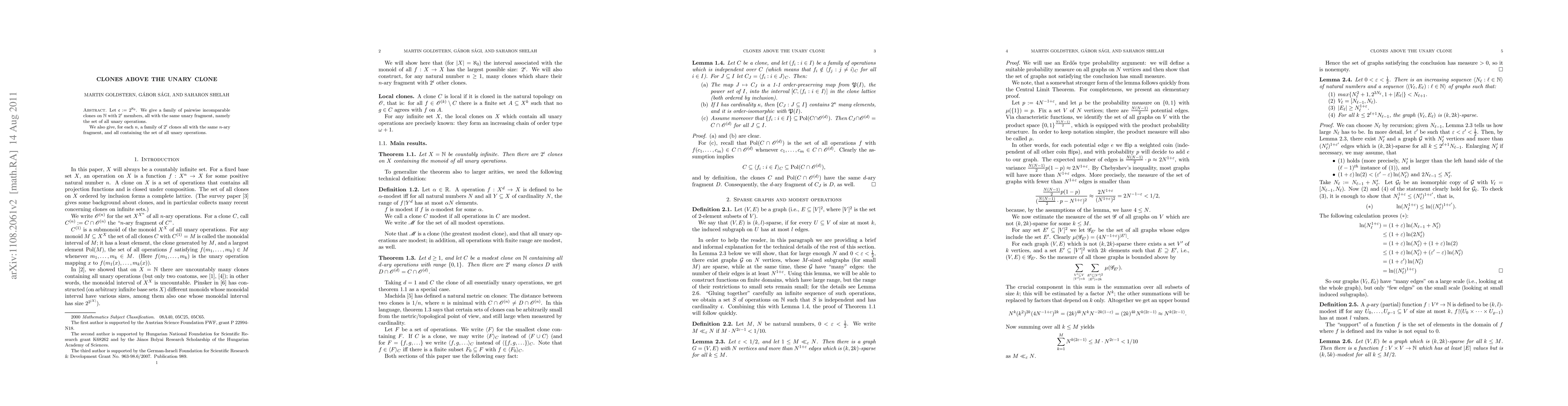 Let c be the cardinality of the continuum. We give a family of pairwise incomparable clones (on a countable base set) 2^c members, all with the same unary fragment, namely the set of all unary operations. We also give, for each n, a family of 2^c clones all with the same n-ary fragment, and all containing the set of all unary operations.