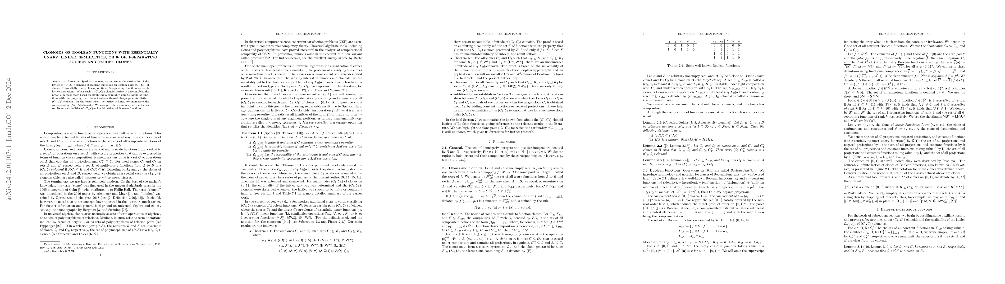 This paper extends Sparks's theorem to determine the cardinality of the lattice of $(C_1,C_2)$-clonoids of Boolean functions for specific clone pairs involving unary, linear, or separating functions, proving the uncountability by constructing infinite function families generating distinct clonoids, and enumerating finite cases.