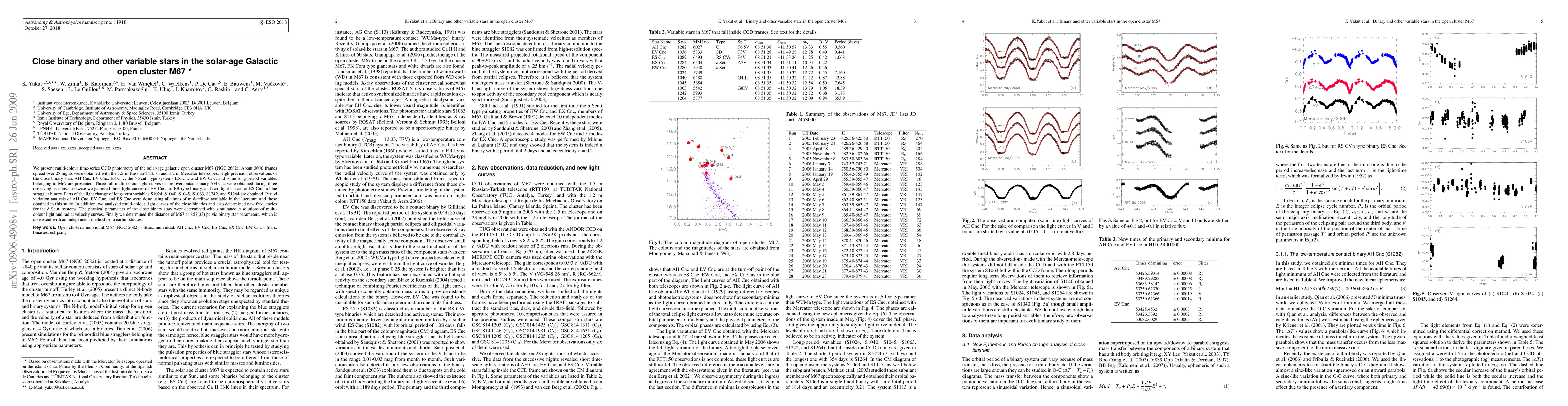 Multi-color time-series CCD photometry was conducted on the solar-age Galactic open cluster M67 using the 1.5 m Russian-Turkish and 1.2 m Mercator telescopes, resulting in high-precision observations of close binary stars and other variables.
