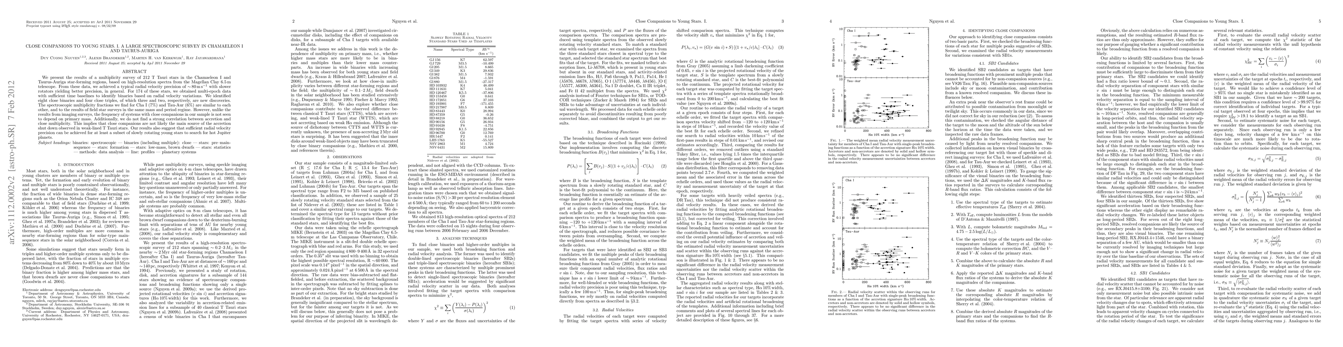 This study presents a spectroscopic survey of 212 T Tauri stars in Chamaeleon I and Taurus-Auriga, identifying eight close binaries and four close triples, with no strong correlation found between close multiplicity and accretion. The results suggest that close companions are unlikely the main source of accretion shut down in these stars.