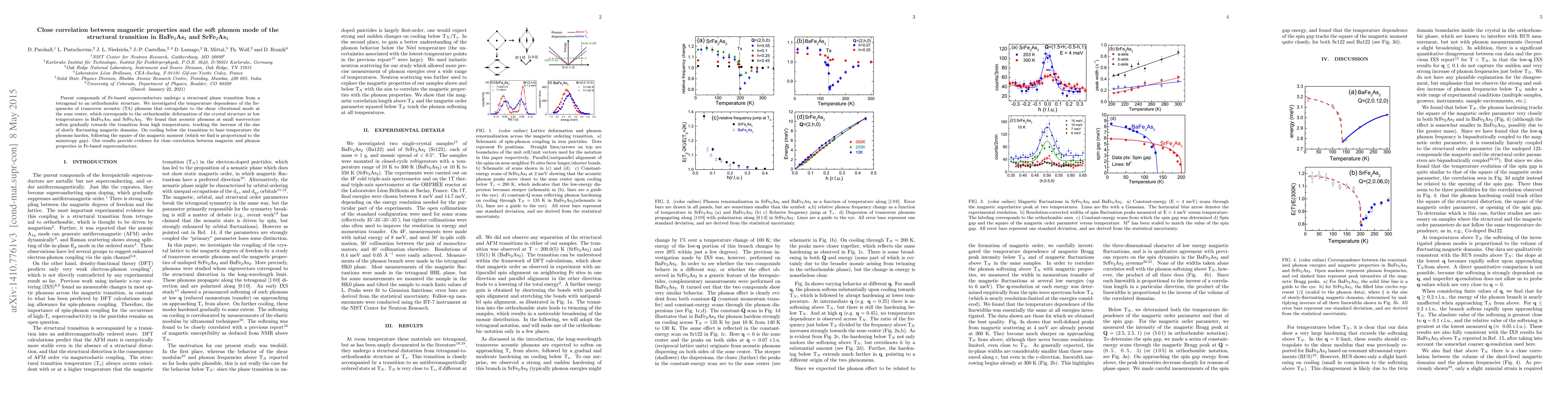 Parent compounds of Fe-based superconductors undergo a structural phase transition from a tetragonal to an orthorhombic structure. We investigated the temperature dependence of the frequencies of transverse acoustic (TA) phonons that extrapolate to the shear vibrational mode at the zone center, which corresponds to the orthorhombic deformation of the crystal structure at low temperatures in BaFe 2 As 2 and SrFe 2 As 2 . We found that acoustic phonons at small wavevectors soften gradually towards the transition from high temperatures, tracking the increase of the size of slowly fluctuating magnetic domains. On cooling below the transition to base temperature the phonons harden, following the square of the magnetic moment. Our results provide evidence for close correlation between magnetic and phonon properties in Fe-based superconductors.