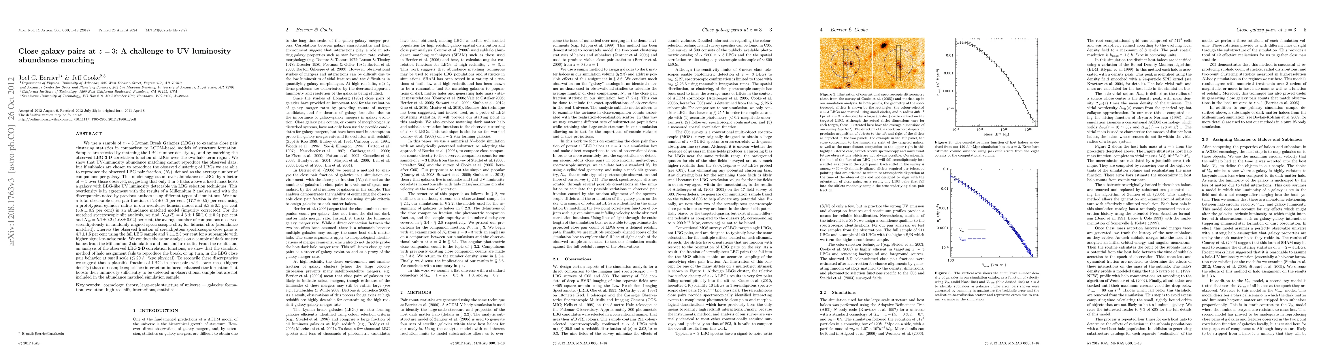 This study uses z~3 Lyman Break Galaxies (LBGs) to analyze close pair clustering, finding that UV-luminosity abundance matching fails to reproduce observed data. By selecting subhalos to match LBG clustering, the research suggests an overabundance of LBGs, indicating only 1 in 5 massive halos hosts a detectable LBG. The observable close pair fraction is 23% in the overdense model versus 8.3% in the abundance-matched model. The findings imply that interaction-induced star formation boosts luminosity of some undetected, lower-mass LBGs in close pairs.