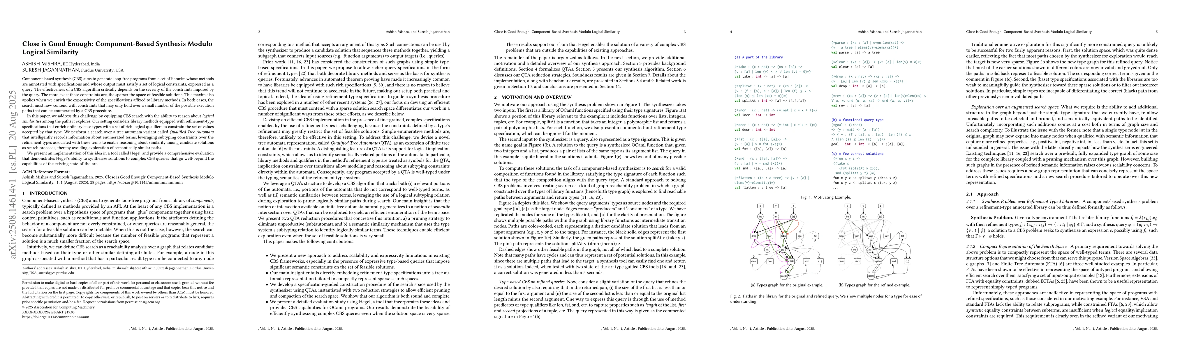 The research introduces Close is Good Enough, a Component-Based Synthesis (CBS) method that leverages logical similarity to efficiently handle complex queries with refinement-type specifications. It utilizes Qualified Tree Automata (QTA) to represent and reason about logical constraints, employing pruning and similarity reduction strategies to minimize the search space.