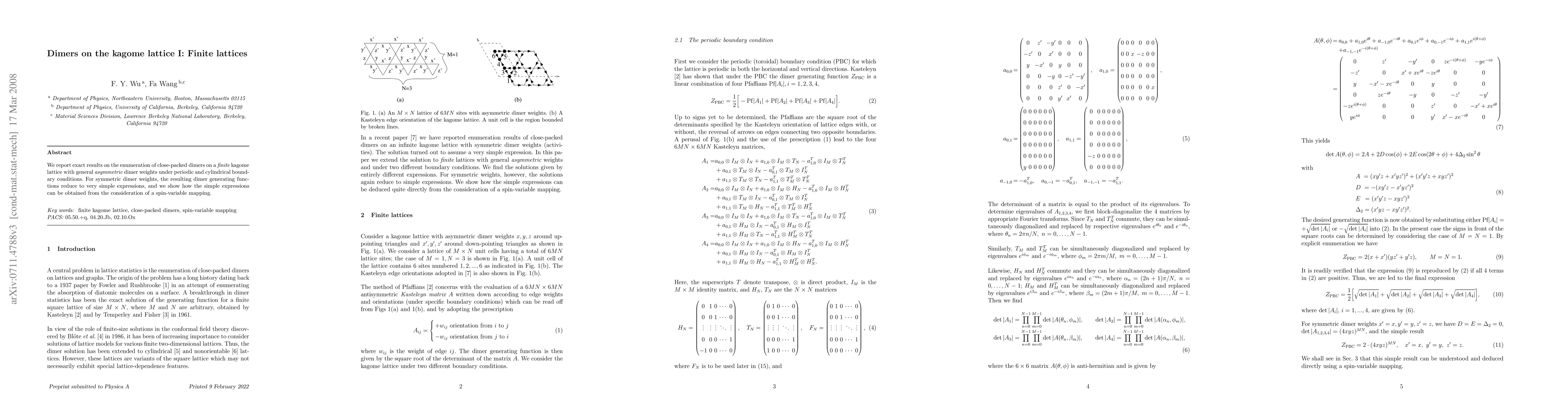 This paper extends previous results on the enumeration of close-packed dimers on an infinite kagome lattice to finite lattices under various boundary conditions and asymmetric dimer weights. It details the correlation function analysis and introduces a Grassmannian functional integral approach for the problem.