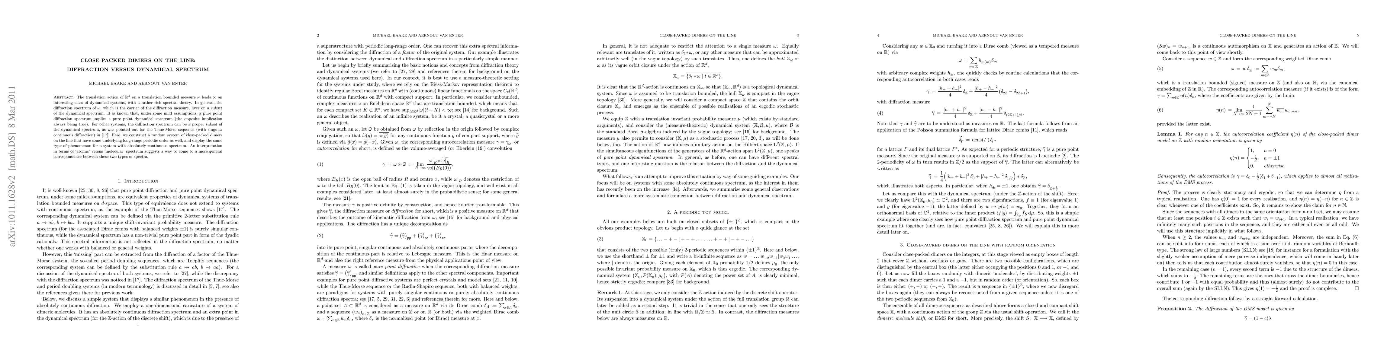 This paper explores a class of dynamical systems derived from translation-bounded measures, focusing on the relationship between diffraction and dynamical spectra. It constructs a random system of close-packed dimers displaying a phenomenon where the diffraction spectrum is a proper subset of the dynamical spectrum, suggesting a deeper correspondence between these two types of spectra.