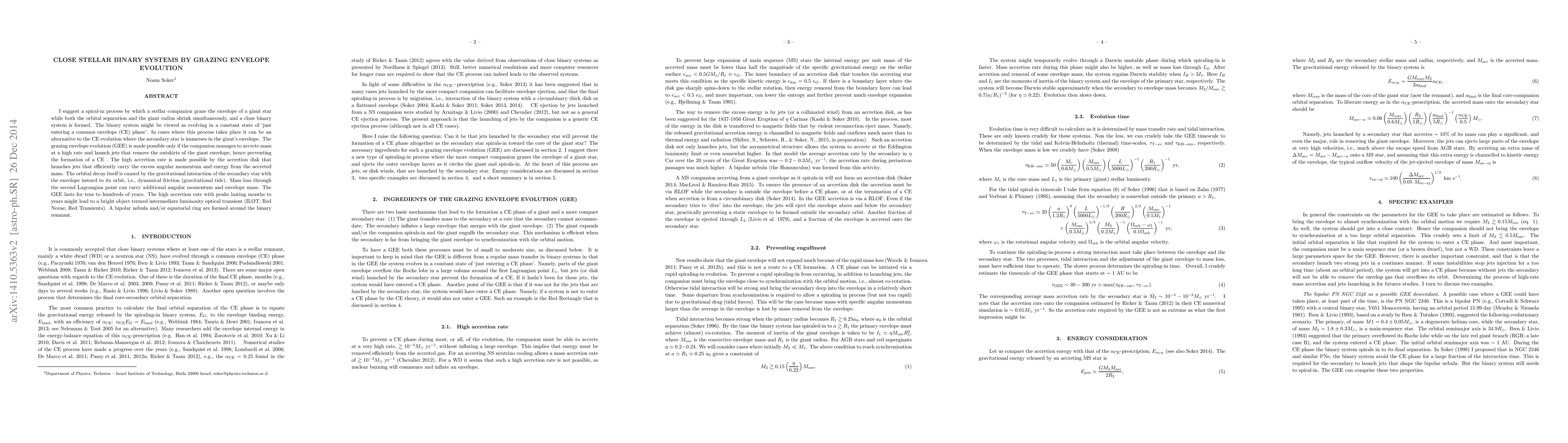 I suggest a spiral-in process by which a stellar companion graze the envelope of a giant star while both the orbital separation and the giant radius shrink simultaneously, and a close binary system is formed. The binary system might be viewed as evolving in a constant state of `just entering a common envelope (CE) phase'. In cases where this process takes place it can be an alternative to the CE evolution where the secondary star is immerses in the giant's envelope. The grazing envelope evolution (GEE) is made possible only if the companion manages to accrete mass at a high rate and launch jets that remove the outskirts of the giant envelope, hence preventing the formation of a CE . The high accretion rate is made possible by the accretion disk that launches jets that efficiently carry the excess angular momentum and energy from the accreted mass. The orbital decay itself is caused by the gravitational interaction of the secondary star with the envelope inward to its orbit, i.e., dynamical friction (gravitational tide). Mass loss through the second Lagrangian point can carry additional angular momentum and envelope mass. The GEE lasts for tens to hundreds of years. The high accretion rate with peaks lasting months to years might lead to a bright object termed intermediate luminosity optical transient (ILOT; Red Novae; Red Transients). A bipolar nebula and/or equatorial ring are formed around the binary remnant