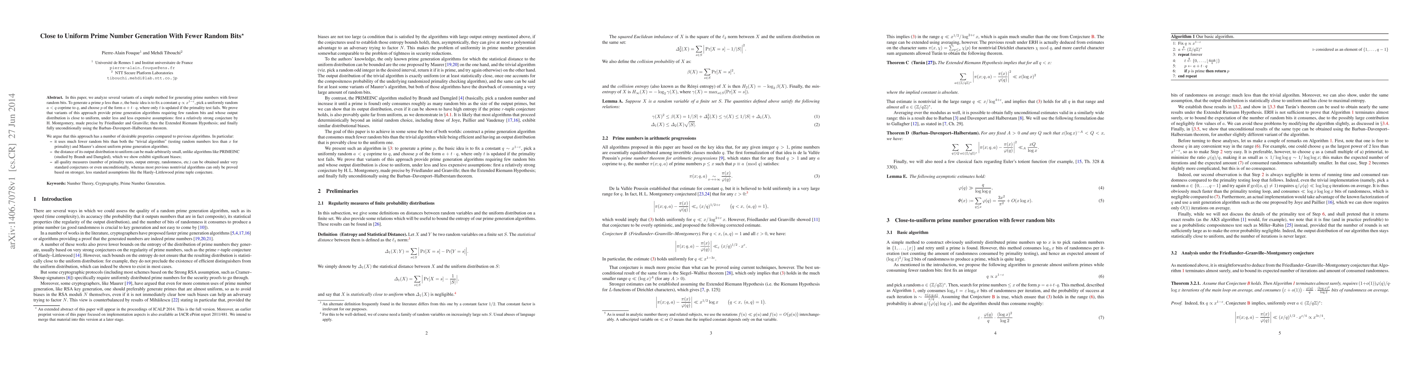prime numbers with fewer random bits. To generate a prime $p$ less than $x$,
