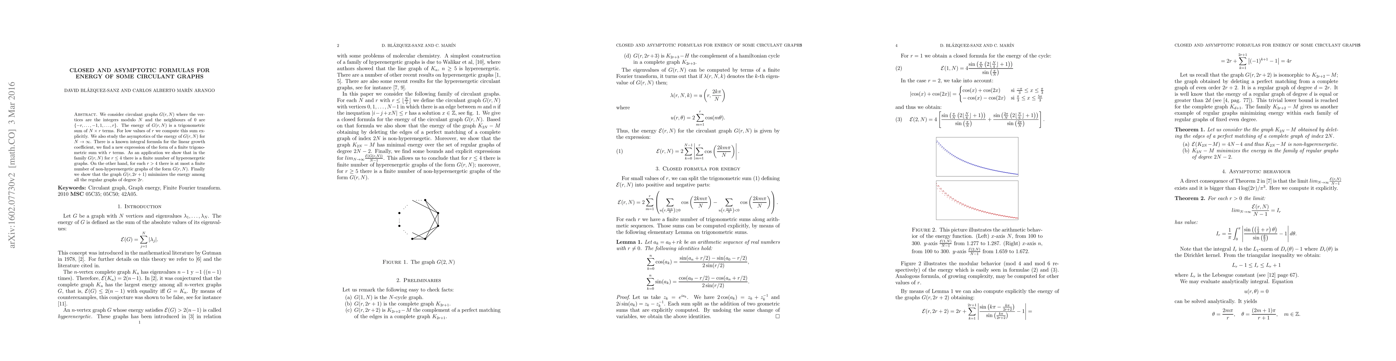 We consider circulant graphs G(r,N) where the vertices are the integers modulo N and the neighbours of 0 are {-r,...,-1,1,...,r}. The energy of G(r,N) is a trigonometric sum of N*r terms. For low values of r we compute this sum explicitly. We also study the asymptotics of the energy of G(r,N) for big N. There is a known integral formula for the linear growth coefficient, we find a new expression of the form of a finite trigonometric sum with r terms. As an application we show that in the family G(r,N) for r less or equal than 4 there is a finite number of hyperenergetic graphs. On the other hand, for each r>4 there is at most a finite number of non-hyperenergetic graphs of the form G(r,N). Finally we show that the graph G(r,2r+1) minimizes the energy among all the regular graphs of degree 2r.