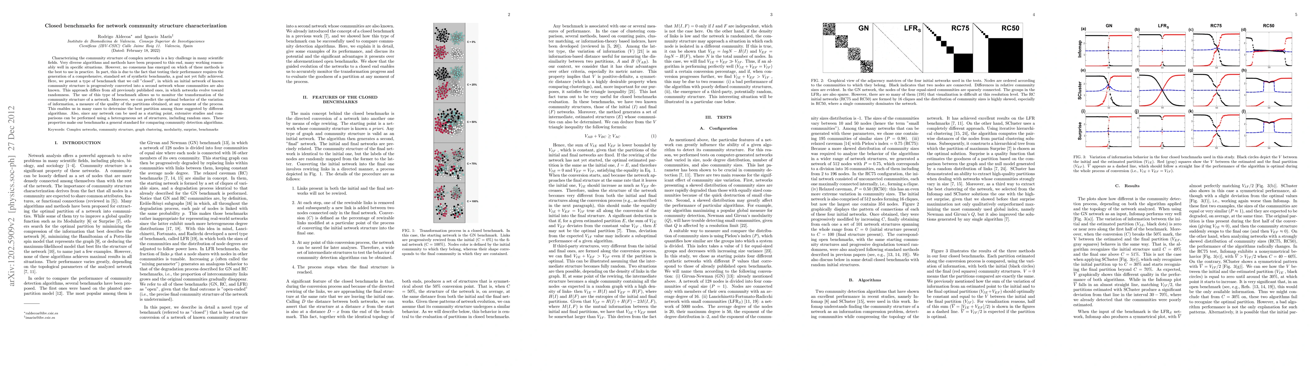Characterizing the community structure of complex networks is a key challenge in many scientific fields. Very diverse algorithms and methods have been proposed to this end, many working reasonably well in specific situations. However, no consensus has emerged on which of these methods is the best to use in practice. In part, this is due to the fact that testing their performance requires the generation of a comprehensive, standard set of synthetic benchmarks, a goal not yet fully achieved. Here, we present a type of benchmark that we call "closed", in which an initial network of known community structure is progressively converted into a second network whose communities are also known. This approach differs from all previously published ones, in which networks evolve toward randomness. The use of this type of benchmark allows us to monitor the transformation of the community structure of a network. Moreover, we can predict the optimal behavior of the variation of information, a measure of the quality of the partitions obtained, at any moment of the process. This enables us in many cases to determine the best partition among those suggested by different algorithms. Also, since any network can be used as a starting point, extensive studies and comparisons can be performed using a heterogeneous set of structures, including random ones. These properties make our benchmarks a general standard for comparing community detection algorithms.