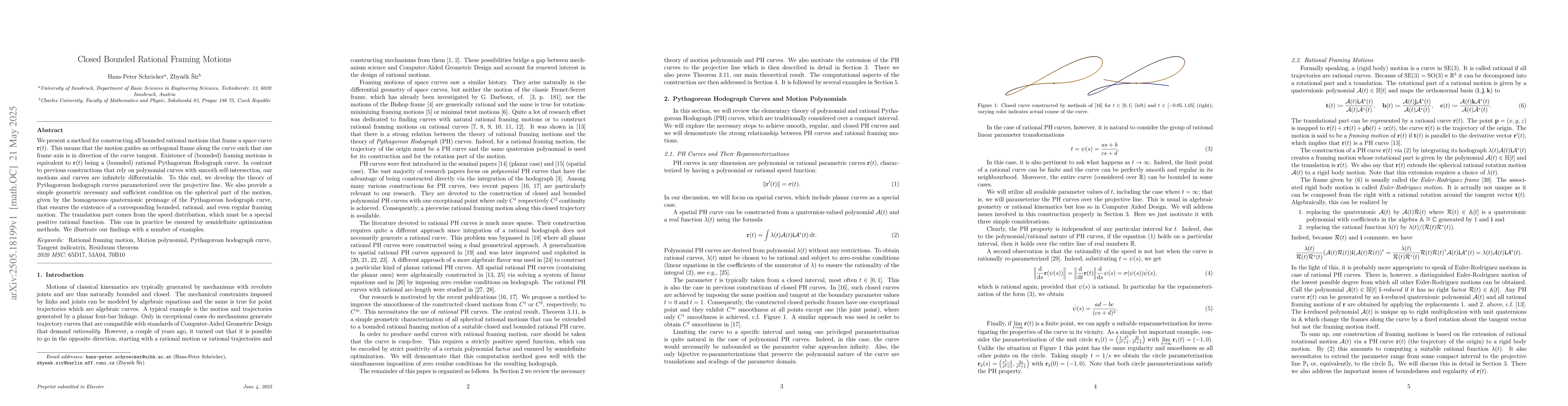 Zbyněk Šír, Hans-Peter Schröcker, Bahar Kalkan et al.
