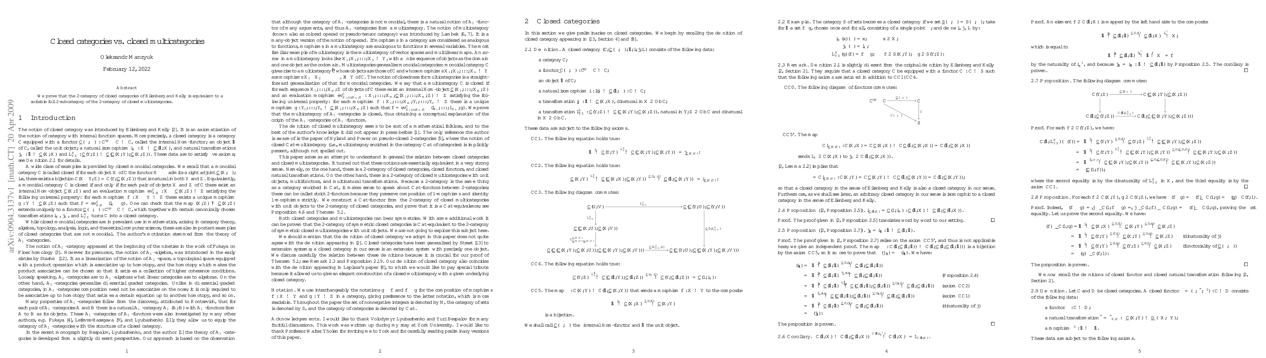 This paper demonstrates the equivalence between the 2-category of Eilenberg-Kelly closed categories and a specific 2-subcategory within the 2-category of closed multicategories. The focus is on the structural relationship and categorical properties linking these two mathematical constructs.