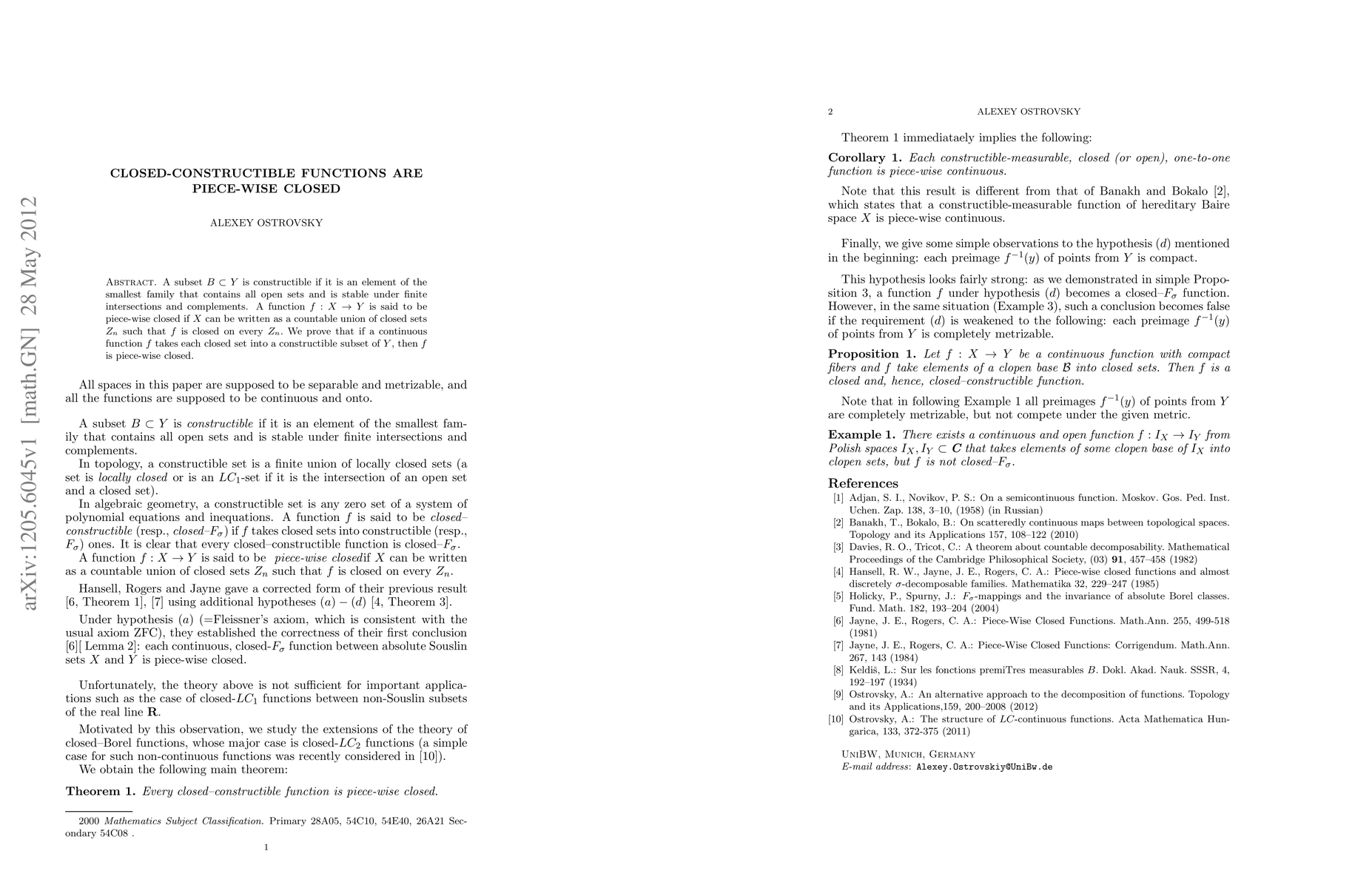 This paper proves that a continuous function $f: X \to Y$ is piece-wise closed if it maps every closed set in $X$ to a constructible subset in $Y$. Constructibility implies that $f$ can be decomposed into closed sets on which it remains closed.