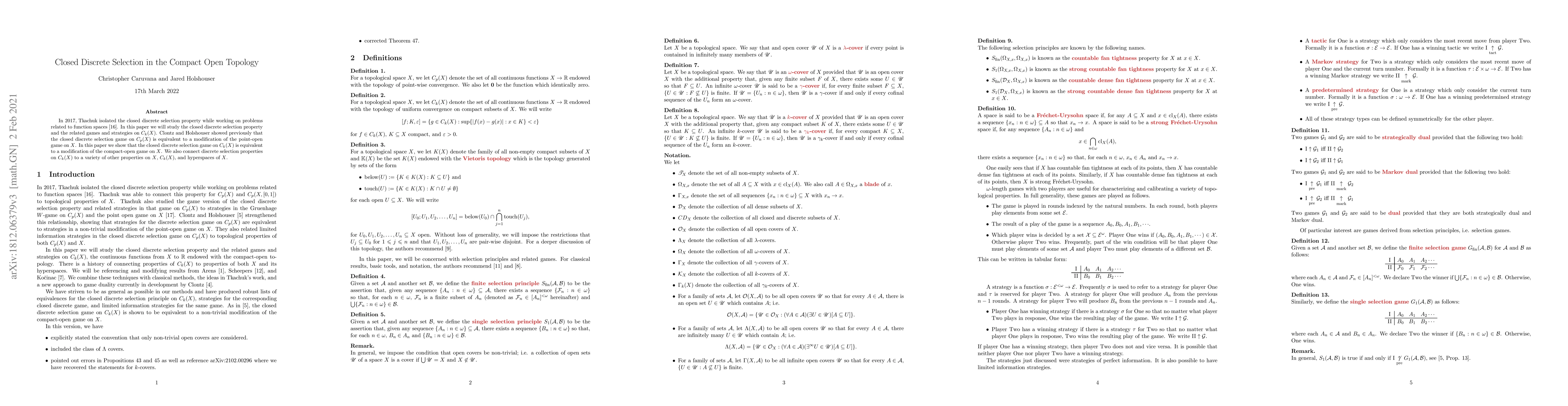 This paper investigates the closed discrete selection property in the context of $C_k(X)$ function spaces, demonstrating its equivalence to a modified compact-open game on $X$. It also explores the connections between discrete selection properties and various other properties on $X$ and its hyperspaces.