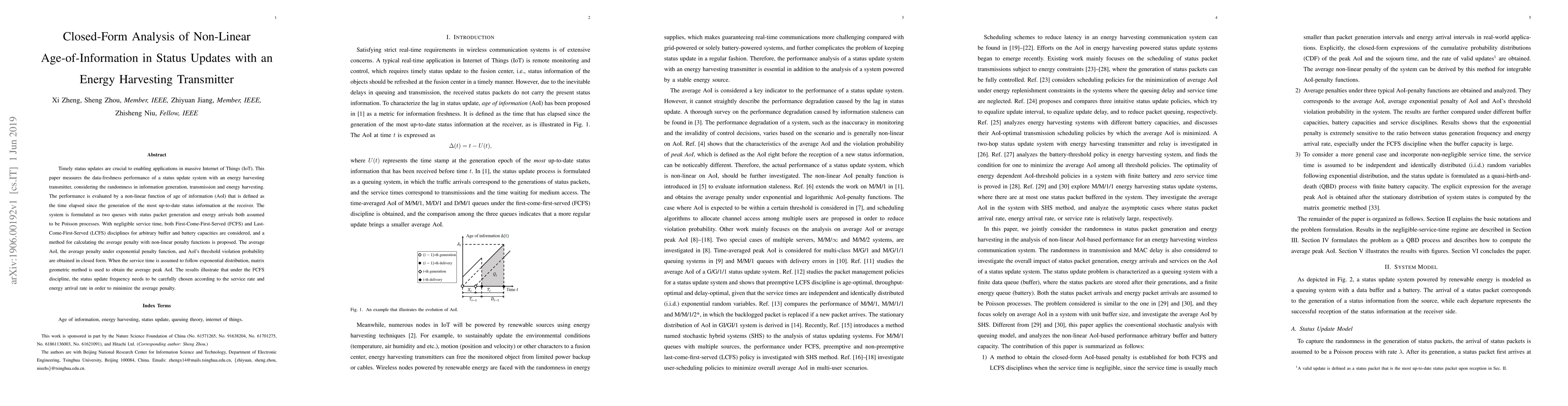Timely status updates are crucial to enabling applications in massive Internet of Things (IoT). This paper measures the data-freshness performance of a status update system with an energy harvesting transmitter, considering the randomness in information generation, transmission and energy harvesting. The performance is evaluated by a non-linear function of age of information (AoI) that is defined as the time elapsed since the generation of the most up-to-date status information at the receiver. The system is formulated as two queues with status packet generation and energy arrivals both assumed to be Poisson processes. With negligible service time, both First-Come-First-Served (FCFS) and Last-Come-First-Served (LCFS) disciplines for arbitrary buffer and battery capacities are considered, and a method for calculating the average penalty with non-linear penalty functions is proposed. The average AoI, the average penalty under exponential penalty function, and AoI's threshold violation probability are obtained in closed form. When the service time is assumed to follow exponential distribution, matrix geometric method is used to obtain the average peak AoI. The results illustrate that under the FCFS discipline, the status update frequency needs to be carefully chosen according to the service rate and energy arrival rate in order to minimize the average penalty.