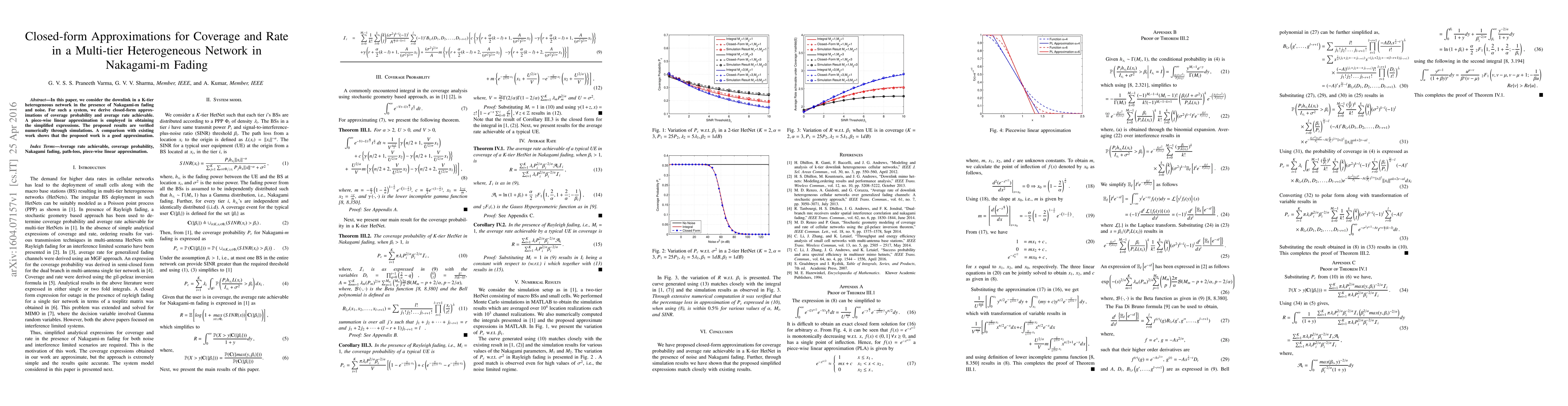 This paper derives closed-form approximations for coverage probability and average rate in a K-tier heterogeneous network under Nakagami-m fading and noise, using a piece-wise linear approach. Numerical simulations validate the results, demonstrating their accuracy compared to existing methods.