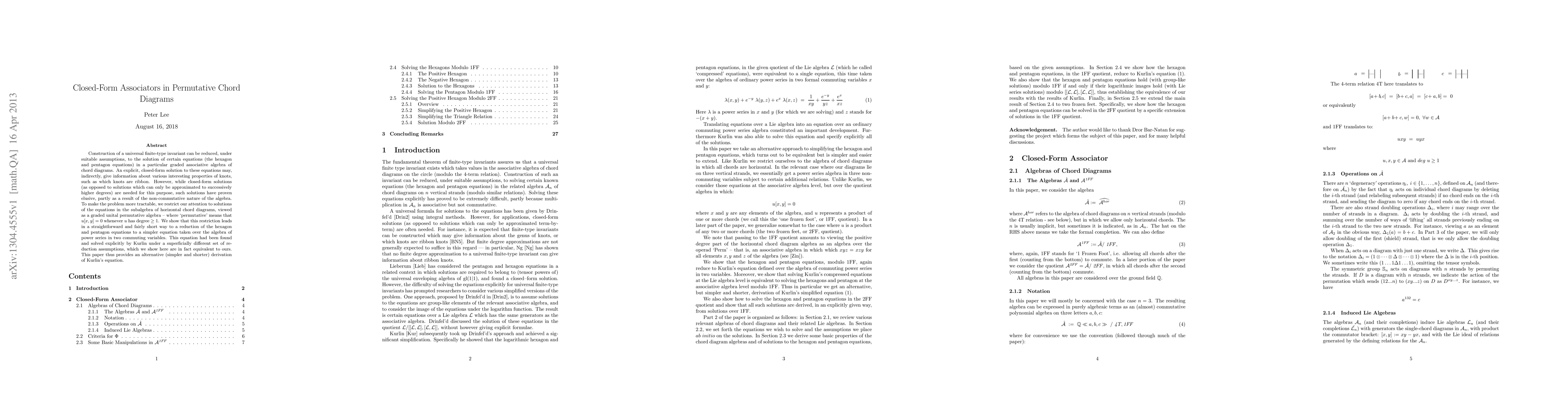 Construction of a universal finite-type invariant can be reduced, under suitable assumptions, to the solution of certain equations (the hexagon and pentagon equations) in a particular graded associative algebra of chord diagrams. An explicit, closed-form solution to these equations may, indirectly, give information about various interesting properties of knots, such as which knots are ribbon. However, while closed-form solutions (as opposed to solutions which can only be approximated to successively higher degrees) are needed for this purpose, such solutions have proven elusive, partly as a result of the non-commutative nature of the algebra. To make the problem more tractable, we restrict our attention to solutions of the equations in the subalgebra of horizontal chord diagrams, viewed as a graded unital permutative algebra -- where `permutative' means that u[x,y]=0 whenever u has degree at least 1. We show that this restriction leads in a straightforward and fairly short way to a reduction of the hexagon and pentagon equations to a simpler equation taken over the algebra of power series in two commuting variables. This equation had been found and solved explicitly by Kurlin under a superficially different set of reduction assumptions, which we show here are in fact equivalent to ours. This paper thus provides an alternative (simpler and shorter) derivation of Kurlin's equation.