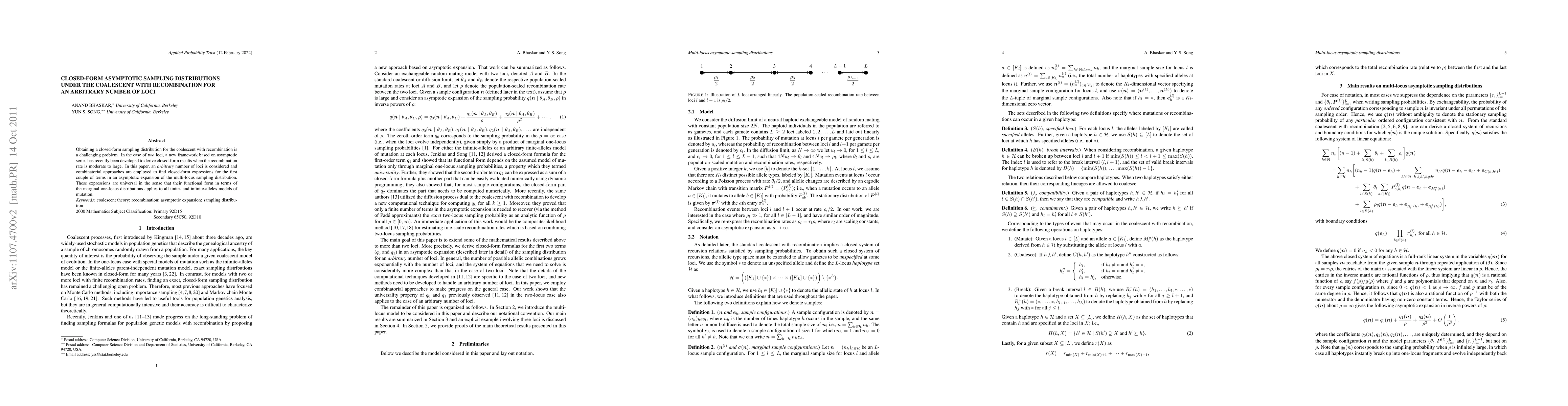 This paper develops a new framework for obtaining closed-form asymptotic sampling distributions under the coalescent with recombination for any number of loci, using combinatorial approaches to derive expressions for the first few terms in an asymptotic expansion. These expressions are universally applicable across finite- and infinite-alleles mutation models.