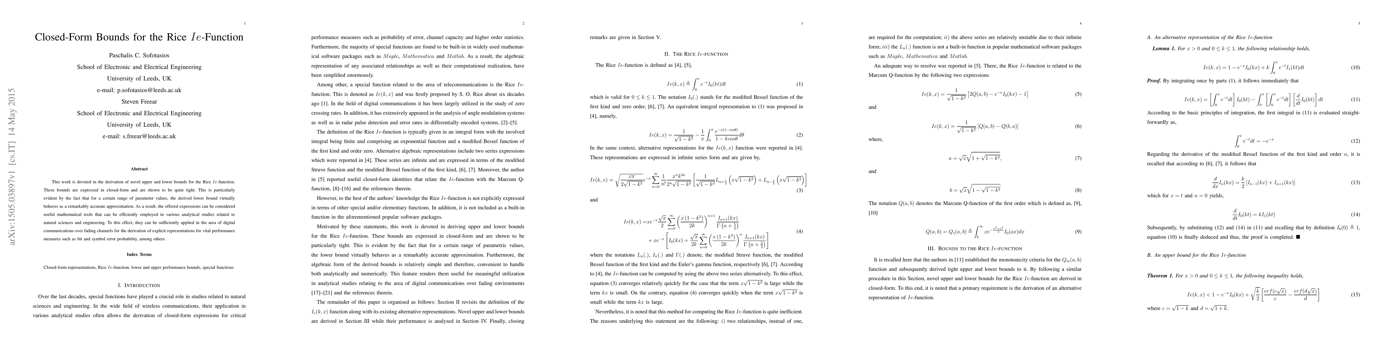 This work is devoted in the derivation of novel upper and lower bounds for the Rice $Ie$-function. These bounds are expressed in closed-form and are shown to be quite tight. This is particularly evident by the fact that for a certain range of parameter values, the derived lower bound virtually behaves as a remarkably accurate approximation. As a result, the offered expressions can be considered useful mathematical tools that can be efficiently employed in various analytical studies related to natural sciences and engineering. To this effect, they can be sufficiently applied in the area of digital communications over fading channels for the derivation of explicit representations for vital performance measures such as bit and symbol error probability, among others.