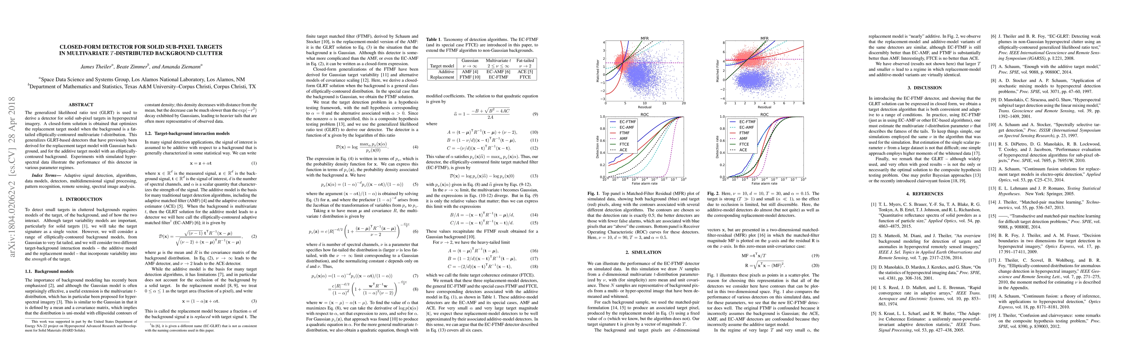The generalized likelihood ratio test (GLRT) is used to derive a detector for solid sub-pixel targets in hyperspectral imagery. A closed-form solution is obtained that optimizes the replacement target model when the background is a fat-tailed elliptically-contoured multivariate t-distribution. This generalizes GLRT-based detectors that have previously been derived for the replacement target model with Gaussian background, and for the additive target model with an elliptically-contoured background. Experiments with simulated hyperspectral data illustrate the performance of this detector in various parameter regimes.