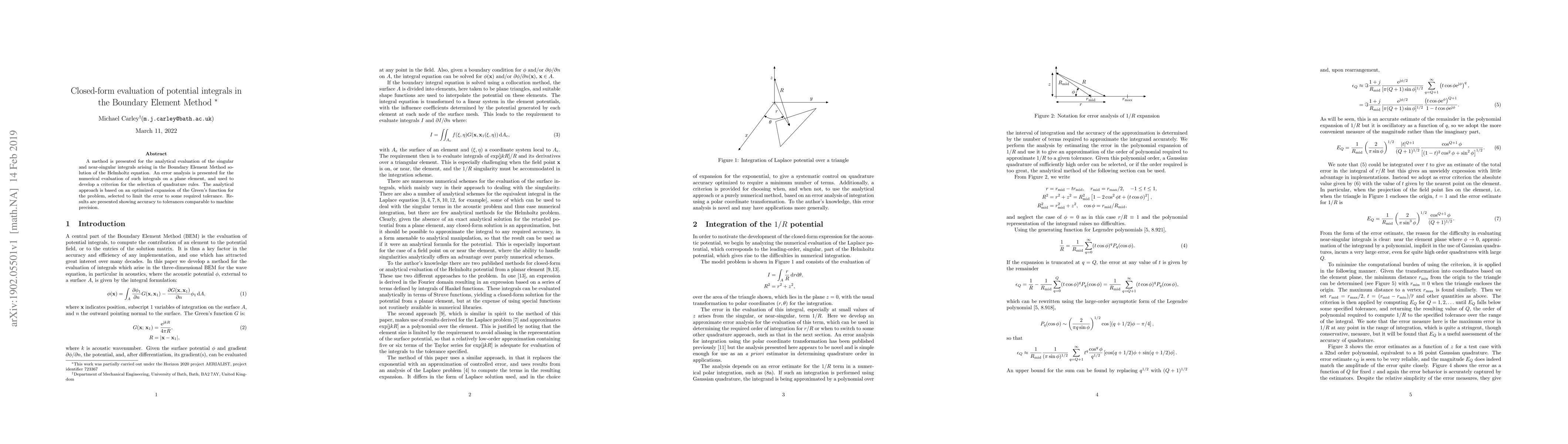 A method is presented for the analytical evaluation of the singular and near-singular integrals arising in the Boundary Element Method solution of the Helmholtz equation. An error analysis is presented for the numerical evaluation of such integrals on a plane element, and used to develop a criterion for the selection of quadrature rules. The analytical approach is based on an optimized expansion of the Green's function for the problem, selected to limit the error to some required tolerance. Results are presented showing accuracy to tolerances comparable to machine precision.