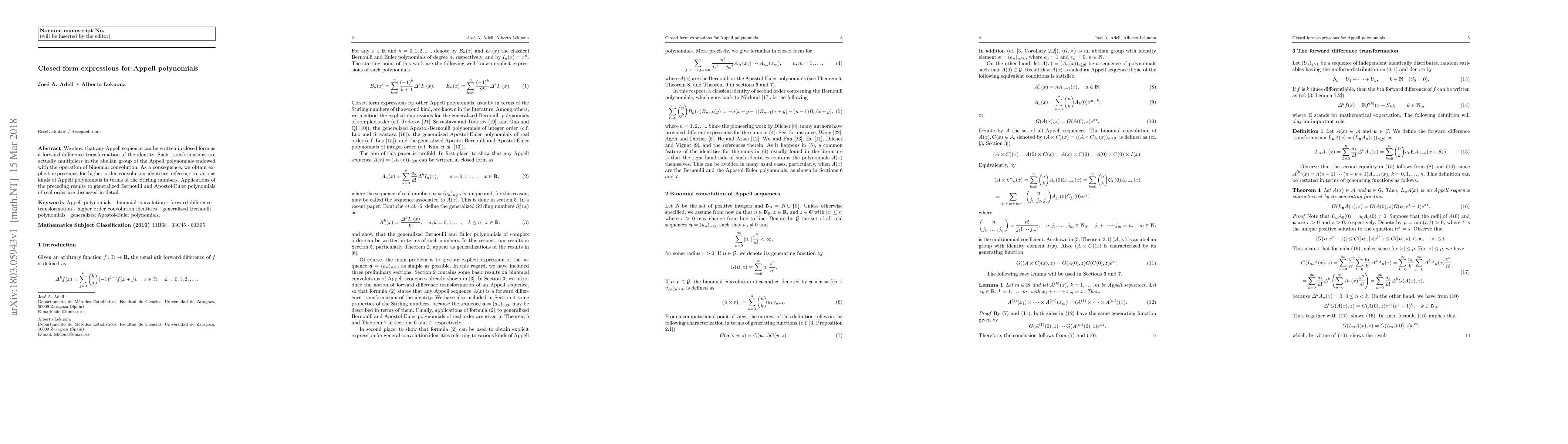 This paper presents closed form expressions for Appell polynomials through forward difference transformations, revealing their structure within the abelian group of binomial convolution. It also derives higher order convolution identities involving Stirling numbers and applies these results to generalized Bernoulli and Apostol-Euler polynomials.