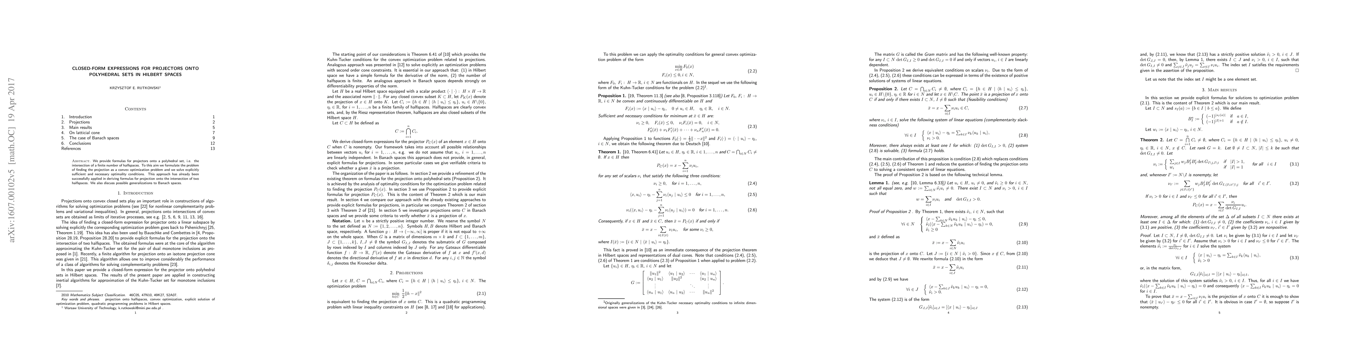 Researchers have developed formulas for finding projectors onto polyhedral sets in Hilbert spaces, which can help solve optimization problems involving intersections of halfspaces.