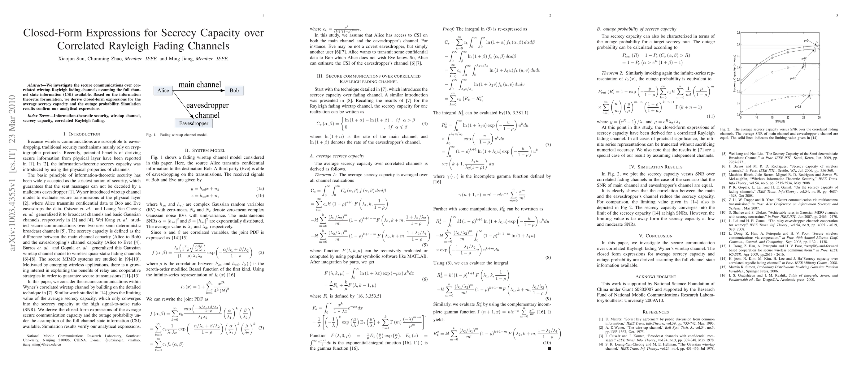 This paper derives closed-form expressions for the average secrecy capacity and outage probability in secure communications over correlated Rayleigh fading wiretap channels with full channel state information. Simulation results validate the proposed analytical formulations.