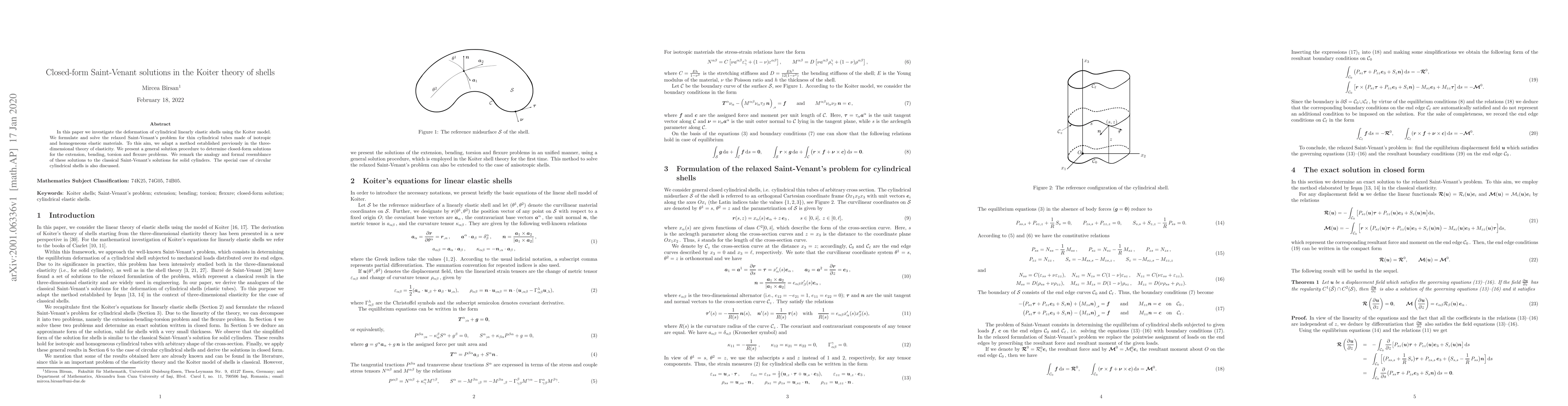 In this paper we investigate the deformation of cylindrical linearly elastic shells using the Koiter model. We formulate and solve the relaxed Saint-Venant's problem for thin cylindrical tubes made of isotropic and homogeneous elastic materials. To this aim, we adapt a method established previously in the three-dimensional theory of elasticity. We present a general solution procedure to determine closed-form solutions for the extension, bending, torsion and flexure problems. We remark the analogy and formal resemblance of these solutions to the classical Saint-Venant's solutions for solid cylinders. The special case of circular cylindrical shells is also discussed.