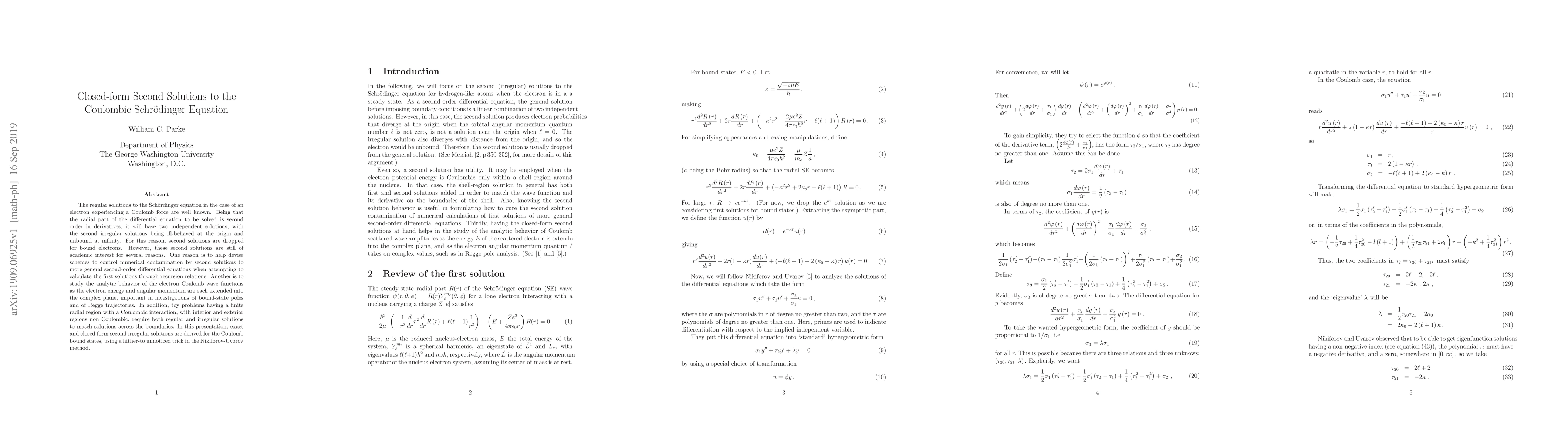 Researchers have developed a method to derive closed-form solutions for irregular wave functions of electrons in Coulomb bound states, expanding on existing knowledge of regular solutions.