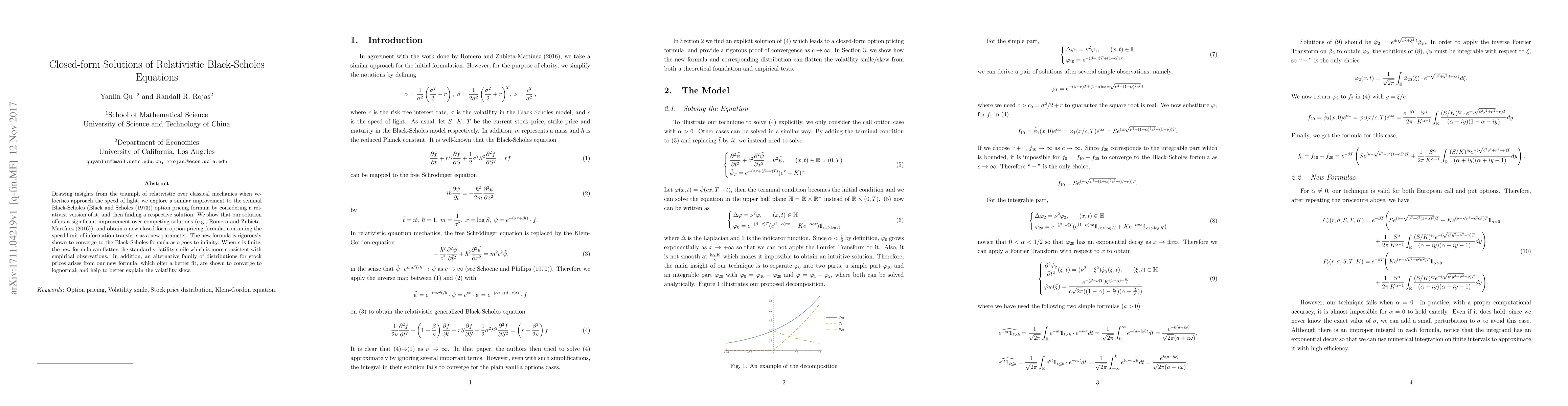 Drawing insights from the triumph of relativistic over classical mechanics when velocities approach the speed of light, we explore a similar improvement to the seminal Black-Scholes (Black and Scholes (1973)) option pricing formula by considering a relativist version of it, and then finding a respective solution. We show that our solution offers a significant improvement over competing solutions (e.g., Romero and Zubieta-Martinez (2016)), and obtain a new closed-form option pricing formula, containing the speed limit of information transfer c as a new parameter. The new formula is rigorously shown to converge to the Black-Scholes formula as c goes to infinity. When c is finite, the new formula can flatten the standard volatility smile which is more consistent with empirical observations. In addition, an alternative family of distributions for stock prices arises from our new formula, which offer a better fit, are shown to converge to lognormal, and help to better explain the volatility skew.