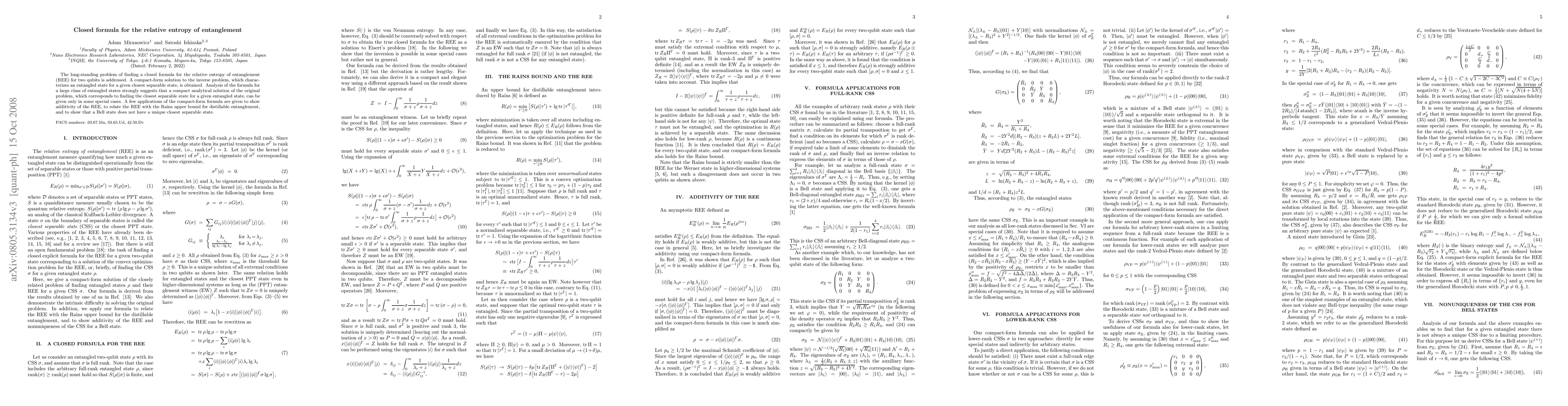 The long-standing problem of finding a closed formula for the relative entropy of entanglement (REE) for two qubits is addressed. A compact-form solution to the inverse problem, which characterizes an entangled state for a given closest separable state, is obtained. Analysis of the formula for a large class of entangled states strongly suggests that a compact analytical solution of the original problem, which corresponds to finding the closest separable state for a given entangled state, can be given only in some special cases. A few applications of the compact-form formula are given to show additivity of the REE, to relate the REE with the Rains upper bound for distillable entanglement, and to show that a Bell state does not have a unique closest separable state.