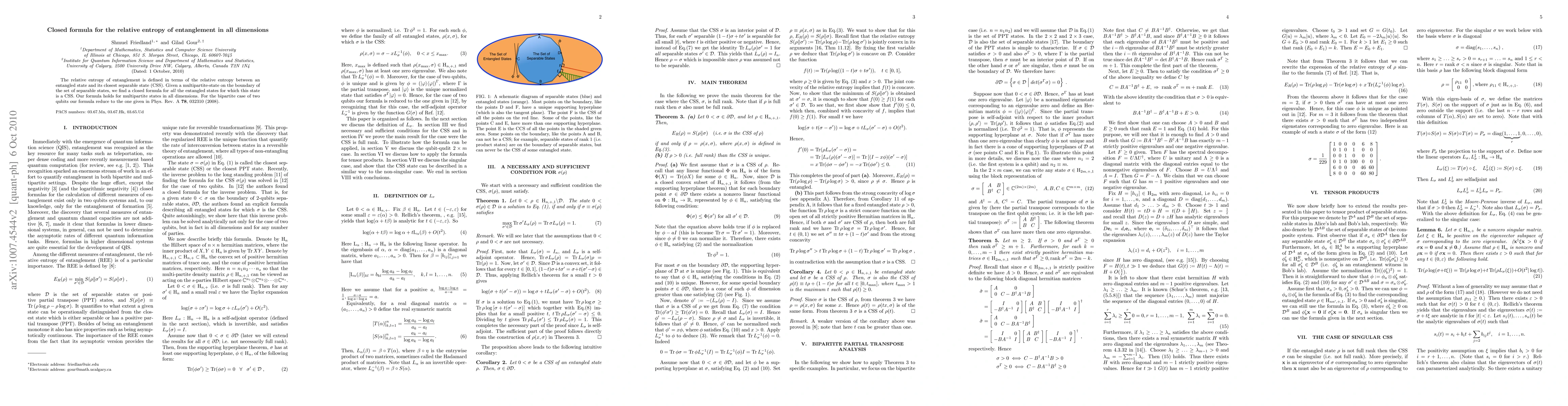 Researchers found a closed formula for calculating relative entropy of entanglement in all dimensions, which helps identify closest separable states in multipartite systems. This discovery has implications for understanding and manipulating entangled quantum states.