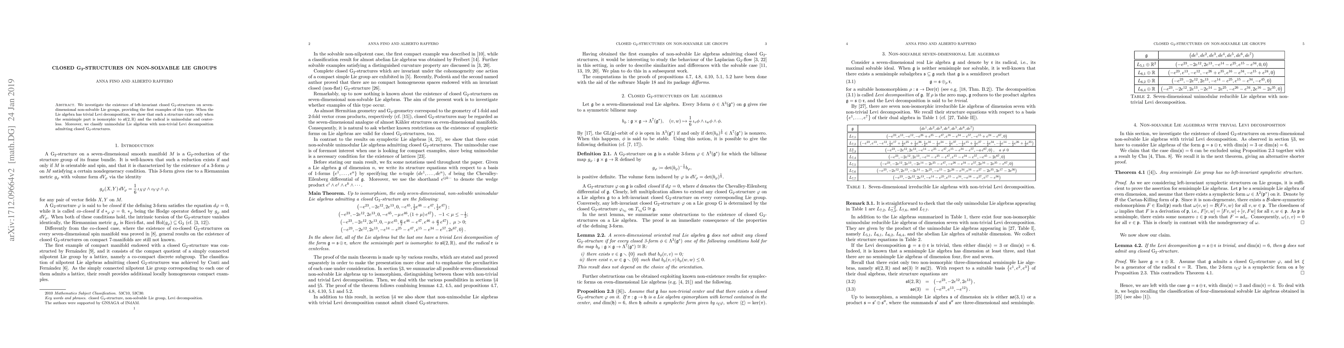 This paper investigates the existence of closed G$_2$-structures on seven-dimensional non-solvable Lie groups, finding they exist only when the semisimple part is $\mathfrak{sl}(2,\mathbb{R})$ and the radical is unimodular and centerless, and classifies unimodular Lie algebras with non-trivial Levi decompositions that admit such structures.