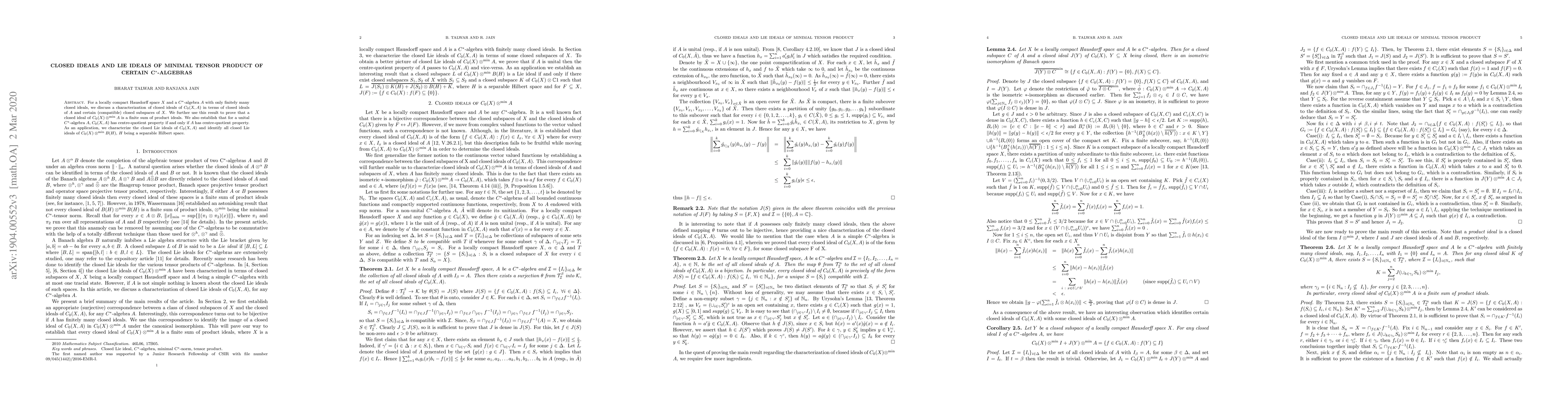 For a locally compact Hausdorff space $X$ and a $C^*$-algebra $A$ with only finitely many closed ideals, we discuss a characterization of closed ideals of $C_0(X,A) $ in terms of closed ideals of $A$ and certain (compatible) closed subspaces of $X$. We further use this result to prove that a closed ideal of $C_0(X) \otimes^{\min} A$ is a finite sum of product ideals. We also establish that for a unital $C^*$-algebra $A$, $C_0(X,A)$ has centre-quotient property if and only if $A$ has centre-quotient property. As an application, we characterize the closed Lie ideals of $C_0(X,A)$ and identify all closed Lie ideals of $ C_0(X) \otimes^{\min} B(H) $, $H$ being a separable Hilbert space.