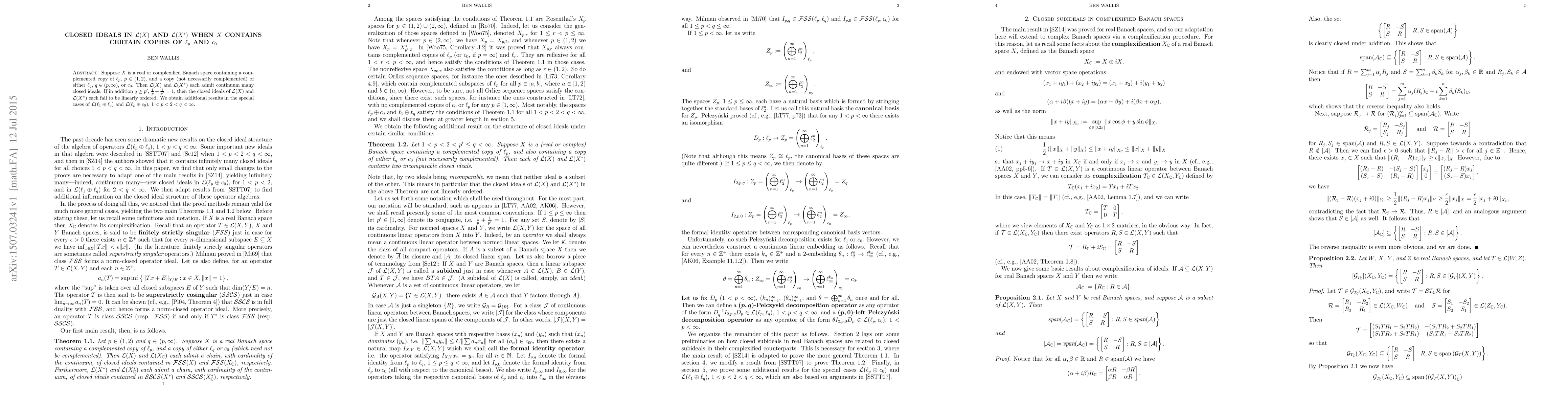 Suppose $X$ is a real or complexified Banach space containing a complemented copy of $\ell_p$, $p\in(1,2)$, and a copy (not necessarily complemented) of either $\ell_q$, $q\in(p,\infty)$, or $c_0$. Then $\mathcal{L}(X)$ and $\mathcal{L}(X^*)$ each admit continuum many closed ideals. If in addition $q\geq p'$, $\frac{1}{p}+\frac{1}{p'}=1$, then the closed ideals of $\mathcal{L}(X)$ and $\mathcal{L}(X^*)$ each fail to be linearly ordered. We obtain additional results in the special cases of $\mathcal{L}(\ell_1\oplus\ell_q)$ and $\mathcal{L}(\ell_p\oplus c_0)$, $1