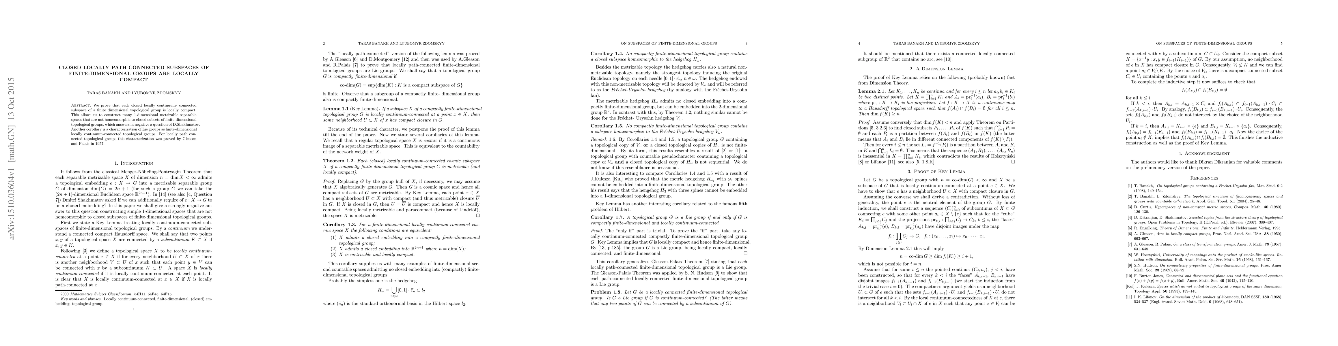 This paper demonstrates that closed locally continuum-connected subspaces of finite-dimensional topological groups are locally compact, addressing a question posed by D. Shakhmatov and providing a characterization of Lie groups as such finite-dimensional groups.