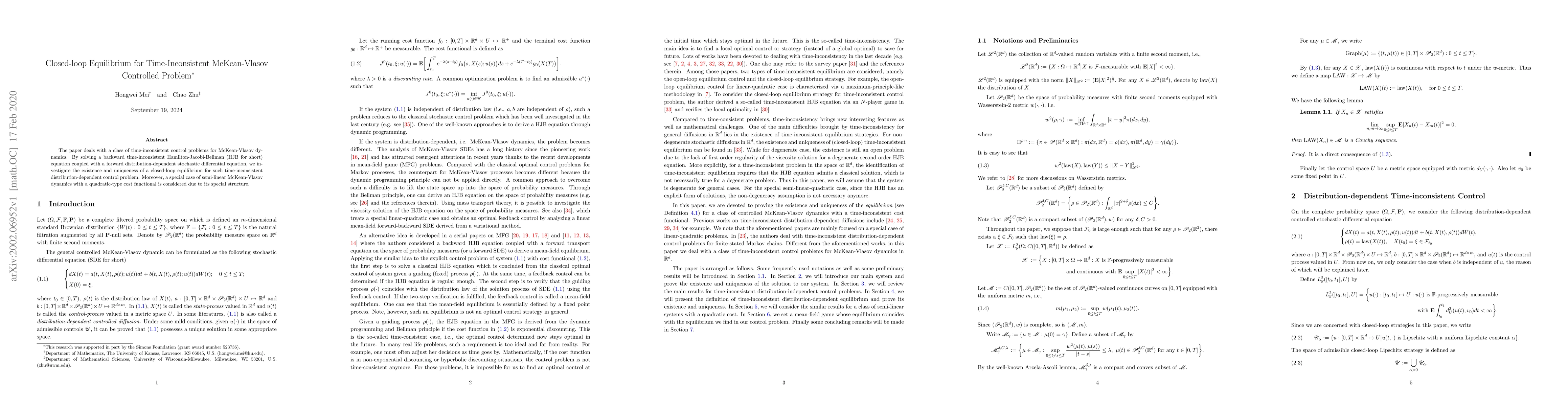 A backward time-inconsistent Hamilton-Jacobi-Bellman (HJB) equation coupled with a forward distribution-dependent stochastic differential equation was used to investigate the existence and uniqueness of a closed-loop equilibrium.