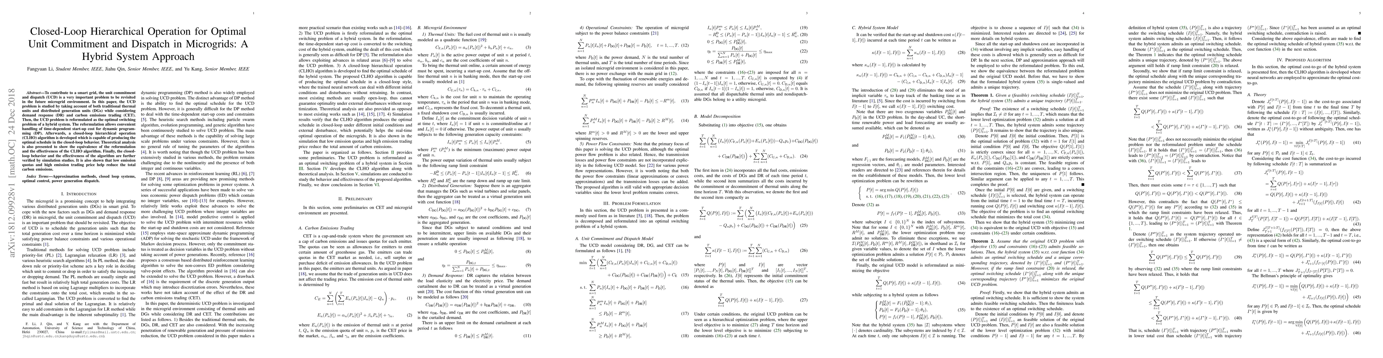 This paper proposes a closed-loop hierarchical operation algorithm to optimize unit commitment and dispatch in microgrids, considering traditional units, distributed generation, demand response, and carbon emissions trading.
