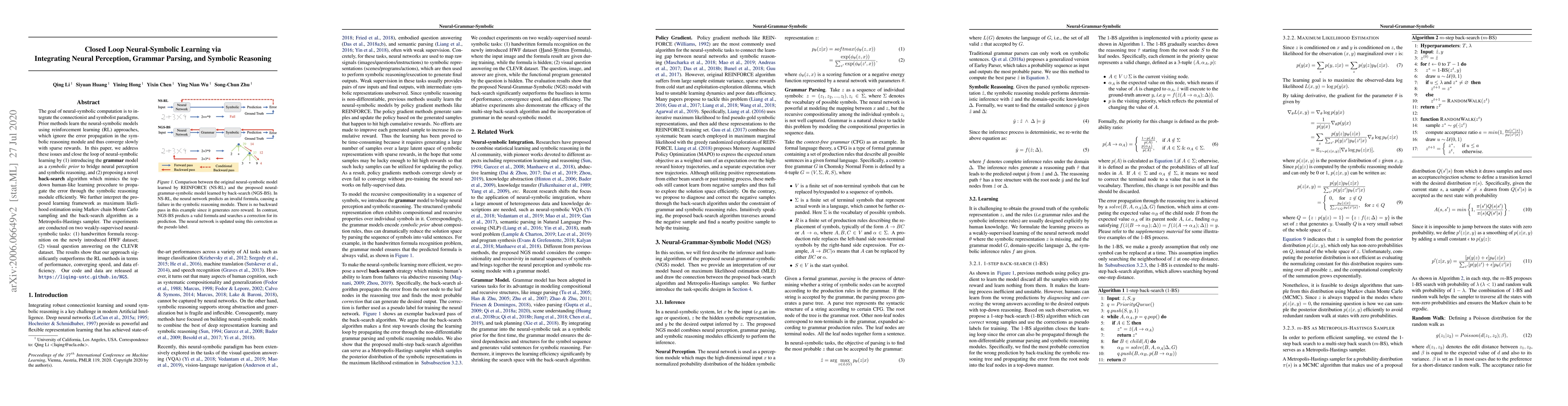 This paper proposes a closed-loop neural-symbolic learning framework that integrates neural perception, grammar parsing, and symbolic reasoning to improve convergence speed and data efficiency. It introduces a grammar model as a symbolic prior and a back-search algorithm to efficiently propagate errors, achieving better performance on handwritten formula recognition and visual question answering tasks.