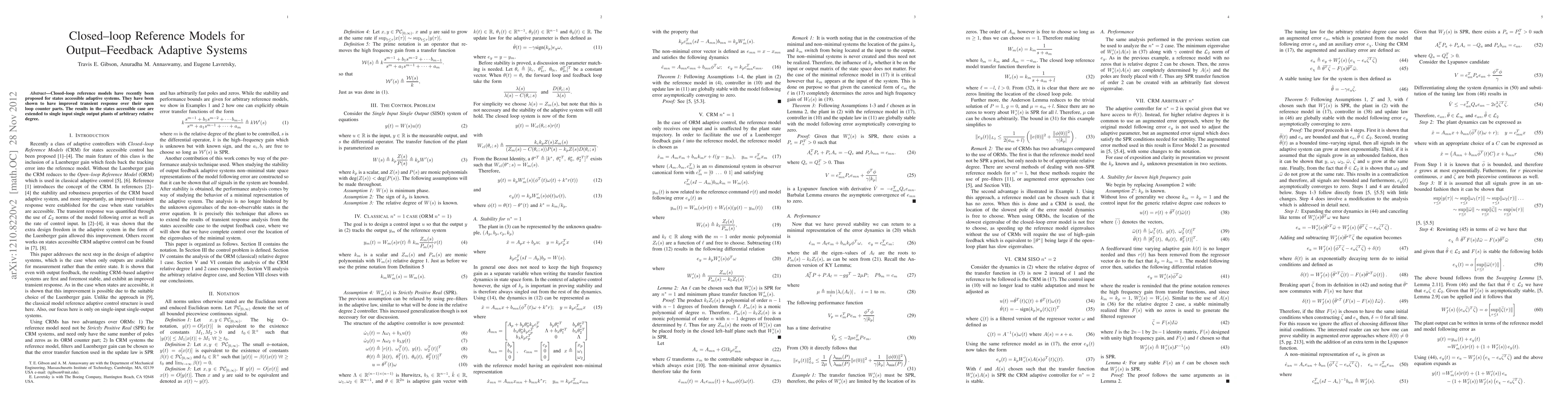 Summary: This paper extends the application of closed-loop reference models to single input single output adaptive systems, demonstrating improved transient response compared to open-loop models, even for systems with arbitrary relative degree. The methodology enhances adaptive control performance in state-accessible systems.