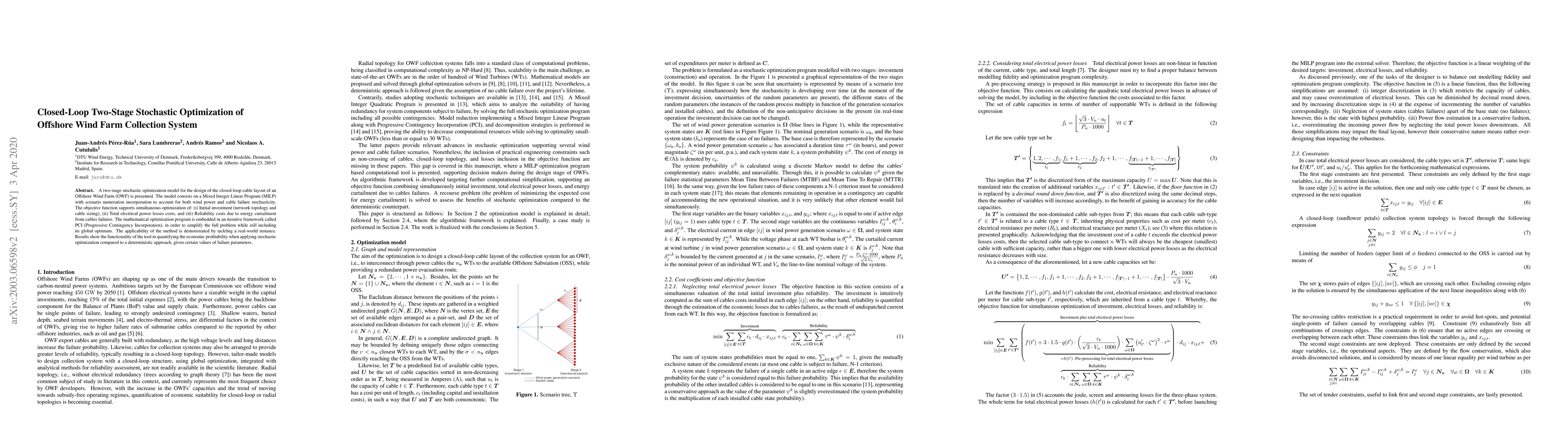 This paper presents a two-stage stochastic optimization model for designing the closed-loop cable layout of an Offshore Wind Farm, incorporating Mixed Integer Linear Programming and scenario numeration to account for wind power and cable failure uncertainties. The model optimizes initial investment, electrical power losses, and reliability costs, demonstrating improved economic profitability through stochastic optimization compared to deterministic methods.