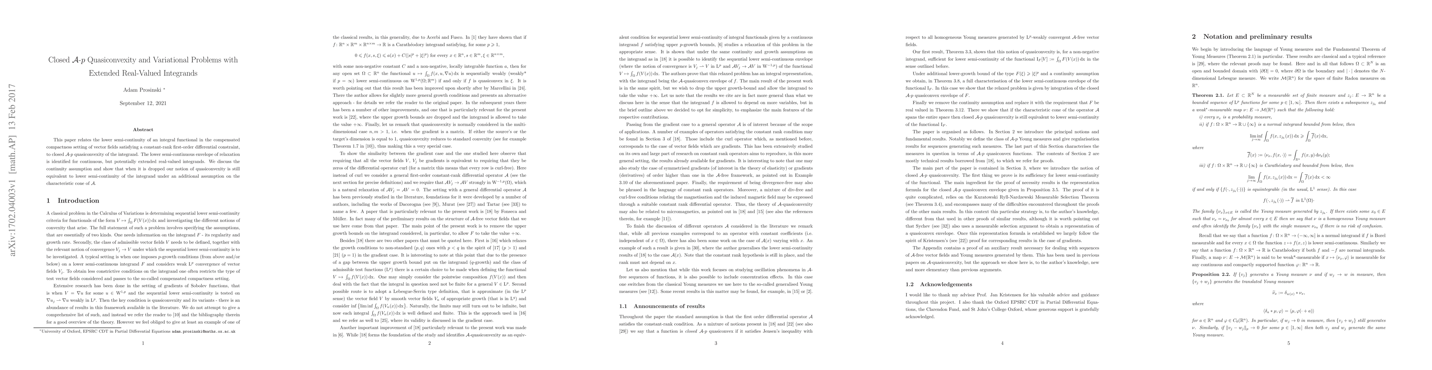 This paper explores the connection between lower semi-continuity of integral functionals and closed $\mathcal{A}$-$p$ quasiconvexity of integrands under a constant-rank differential constraint. It identifies the lower semi-continuous envelope of relaxation for extended real-valued integrands and discusses the implications when the continuity assumption is relaxed.